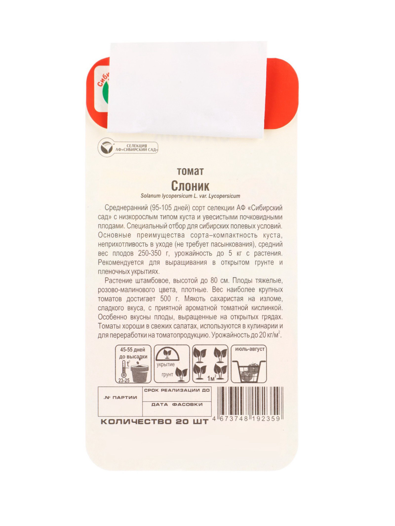 Семена Томат "Слоник", 20 шт., Сибирский сад, Россия