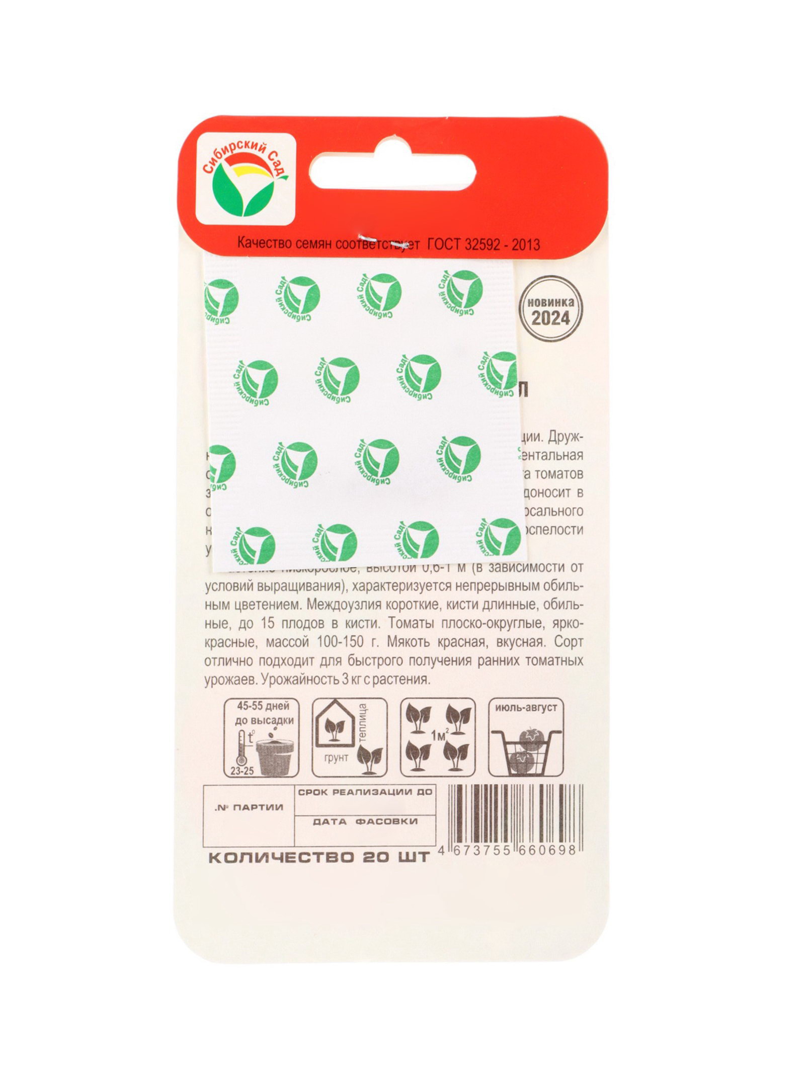 Семена Томат "Быстроспел-Скорострел" 20 шт., Сибирский сад, Россия