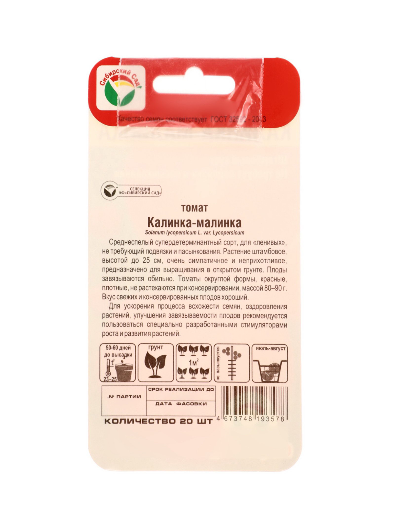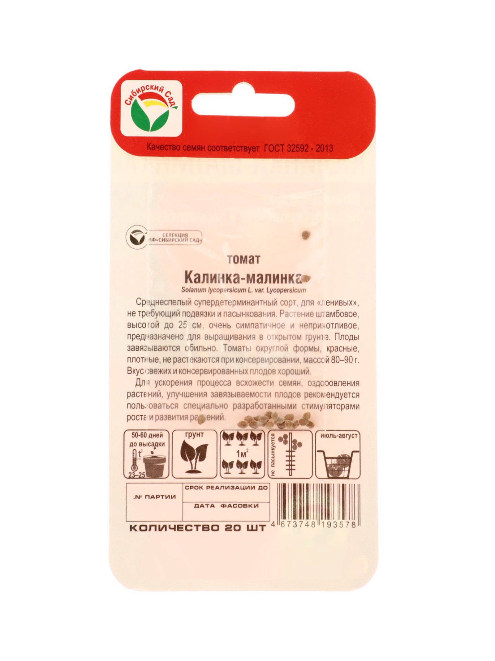 Семена Томат "Калинка малинка", 20 шт., Сибирский сад, Россия