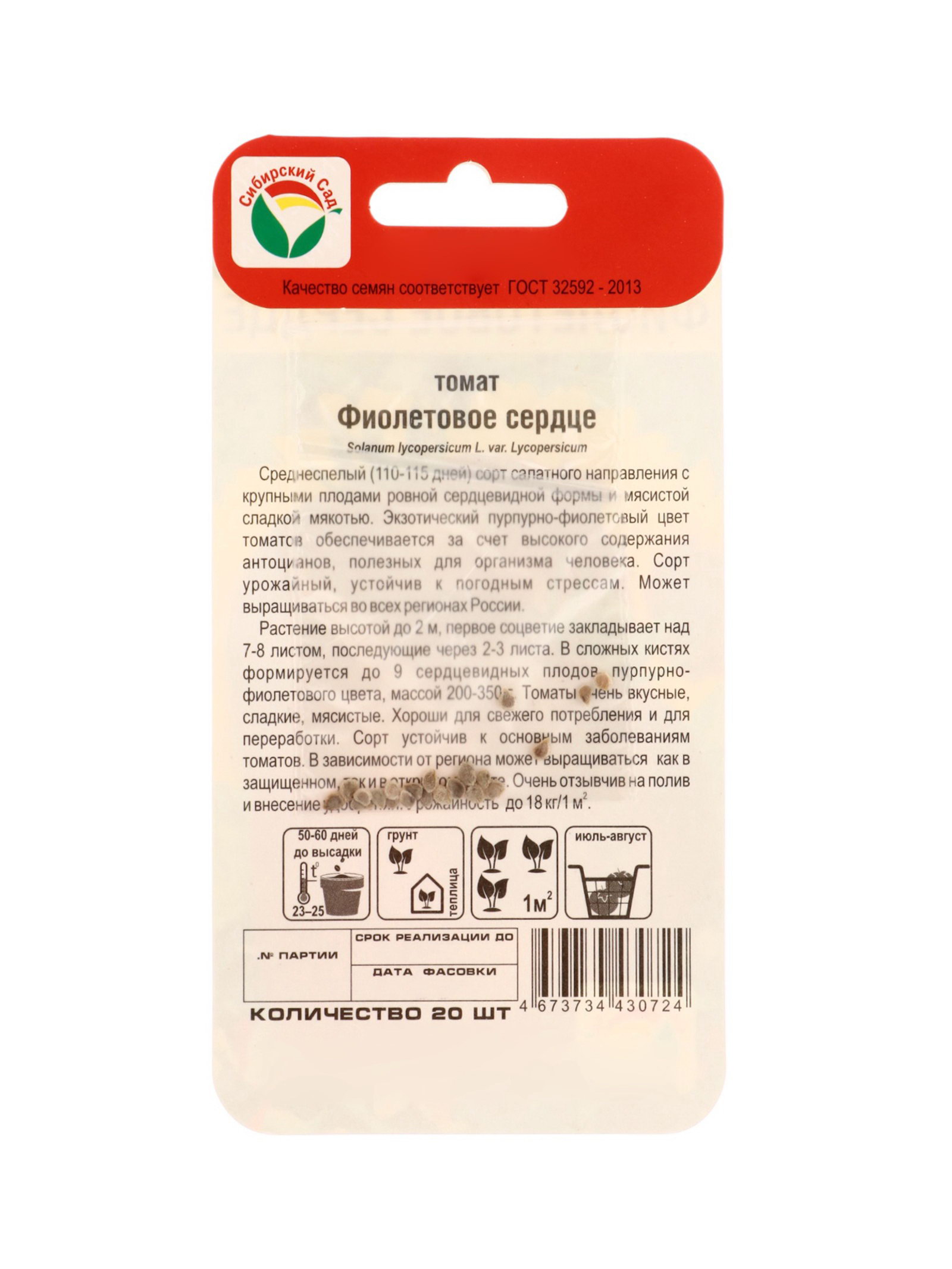 Семена Томат "Фиолетовое сердце", 20 шт., Сибирский сад, Россия