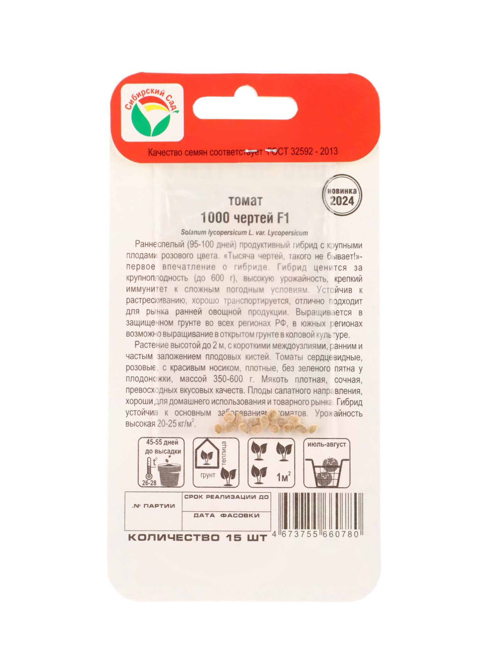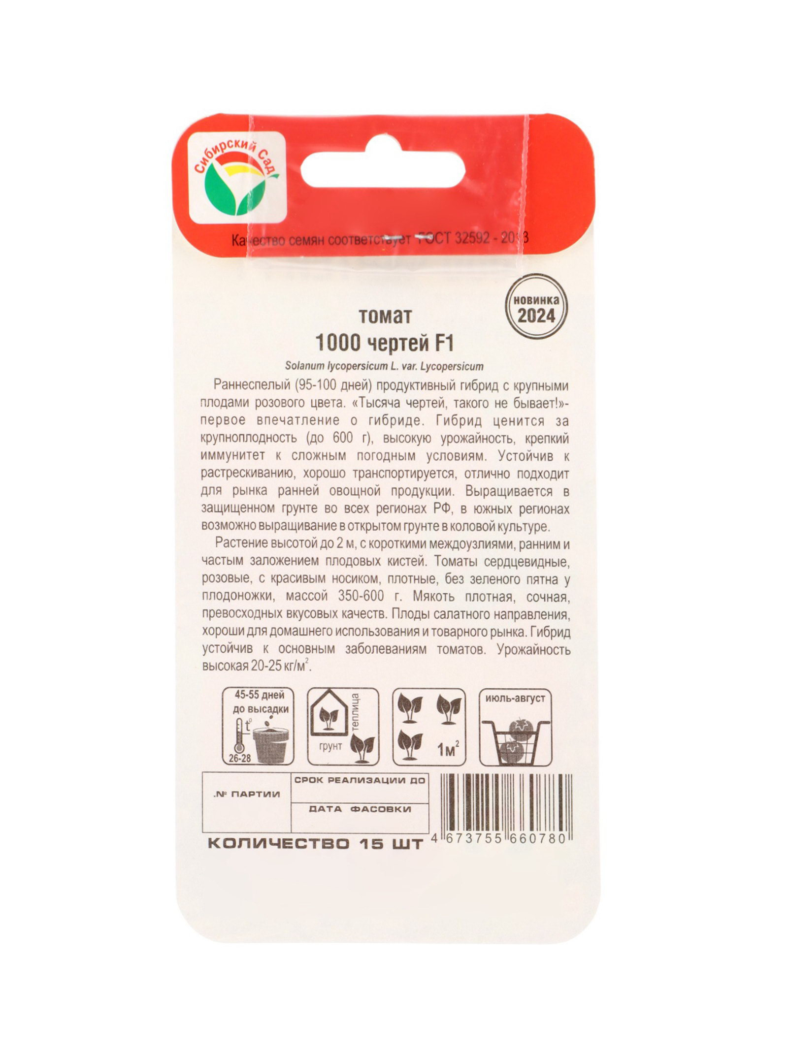 Семена Томат "1000 чертей", F1, 15 шт., Сибирский сад, Россия