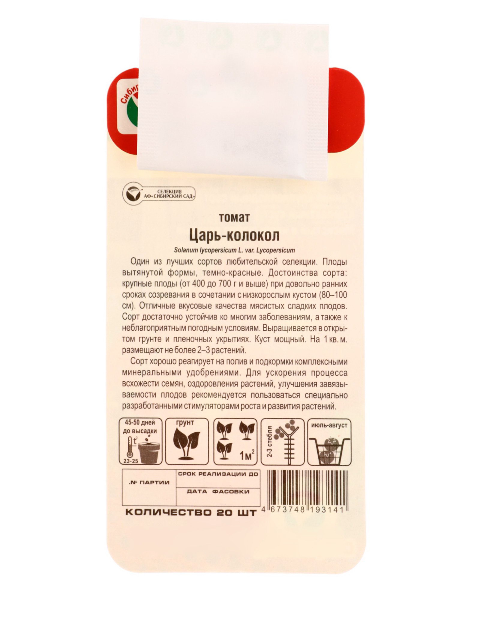 Семена Томат "Царь Колокол", 20 шт., Сибирский сад, Россия