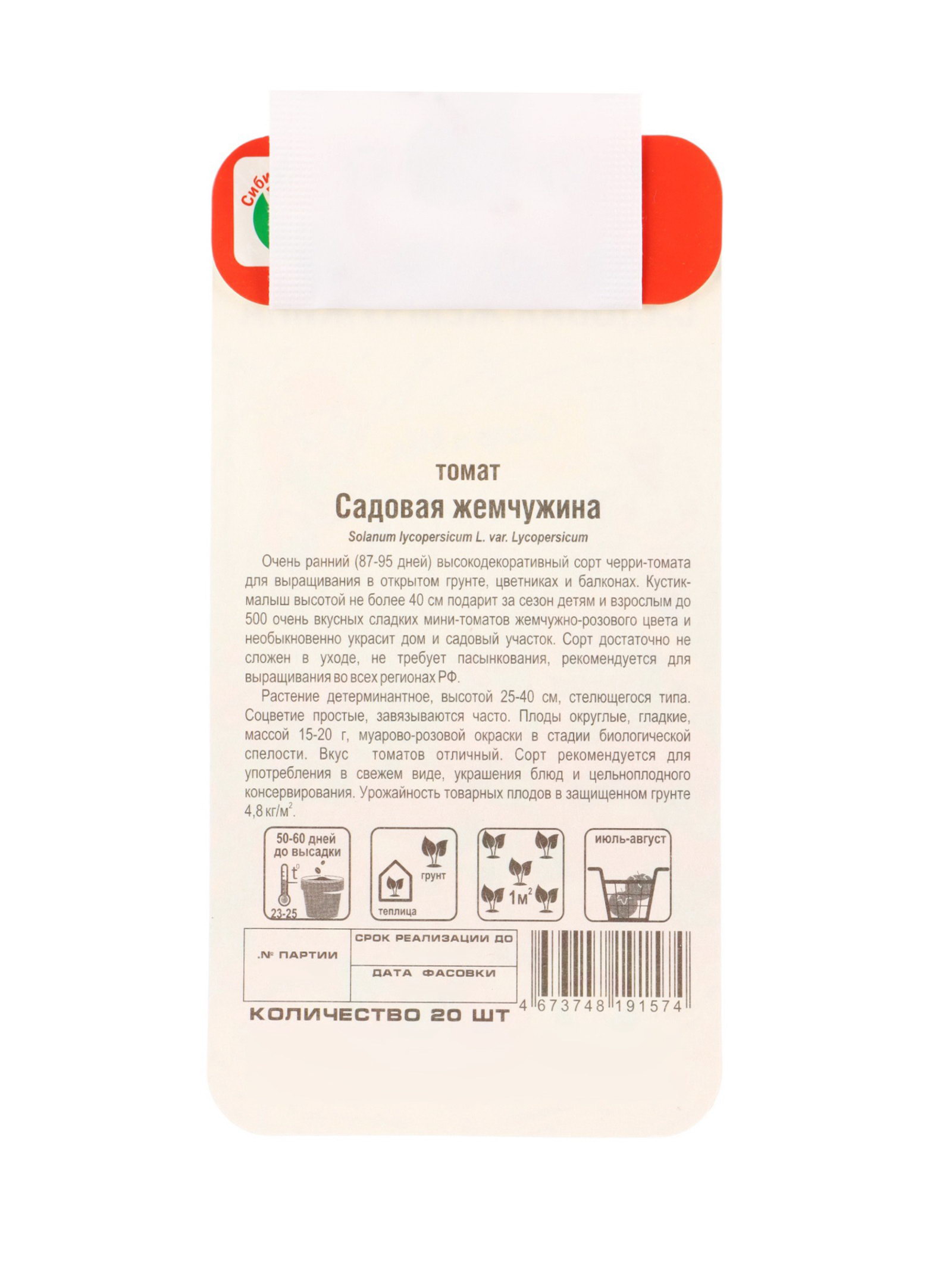Семена Томат "Садовая жемчужина", 20 шт., Сибирский сад, Россия