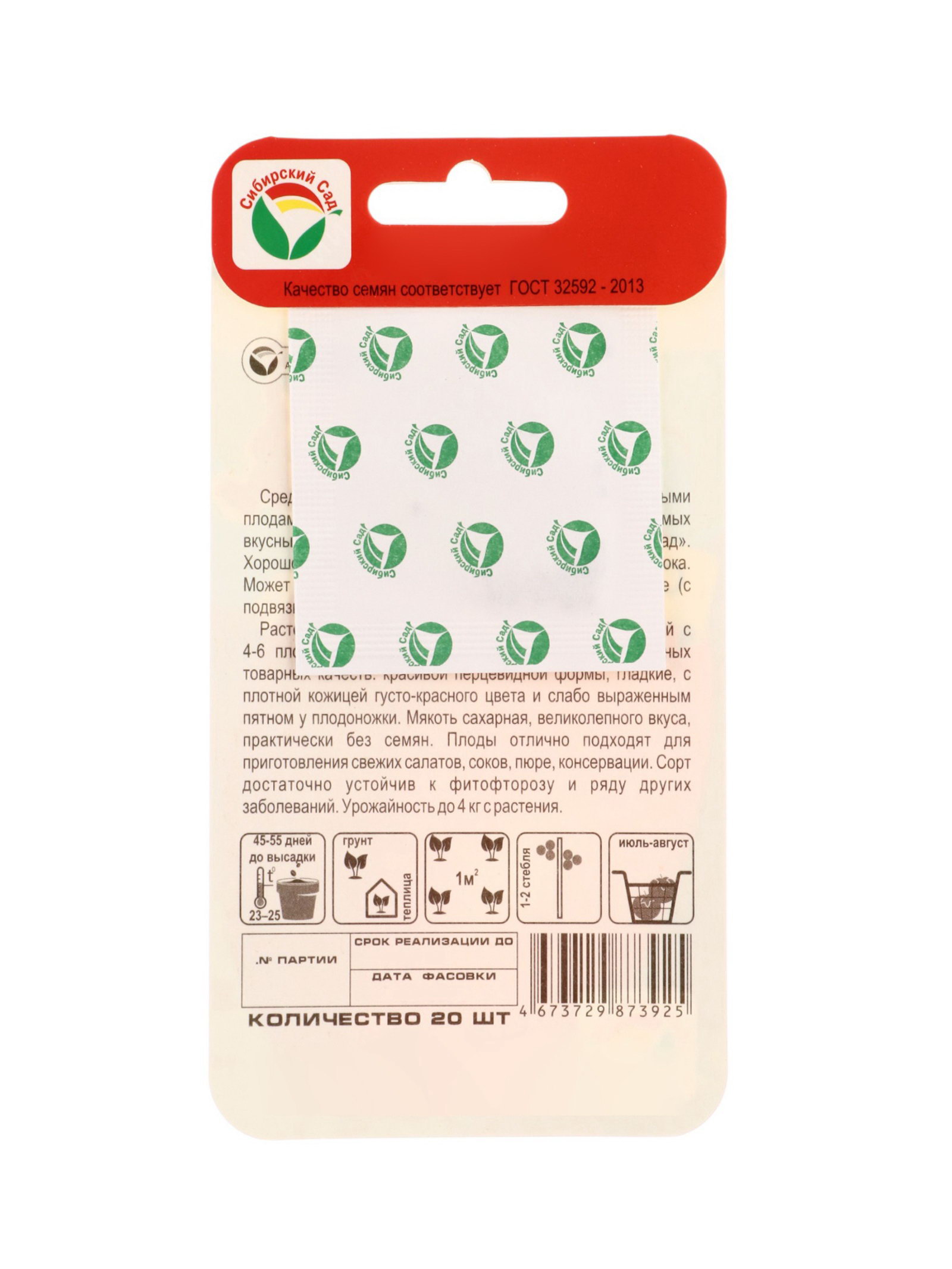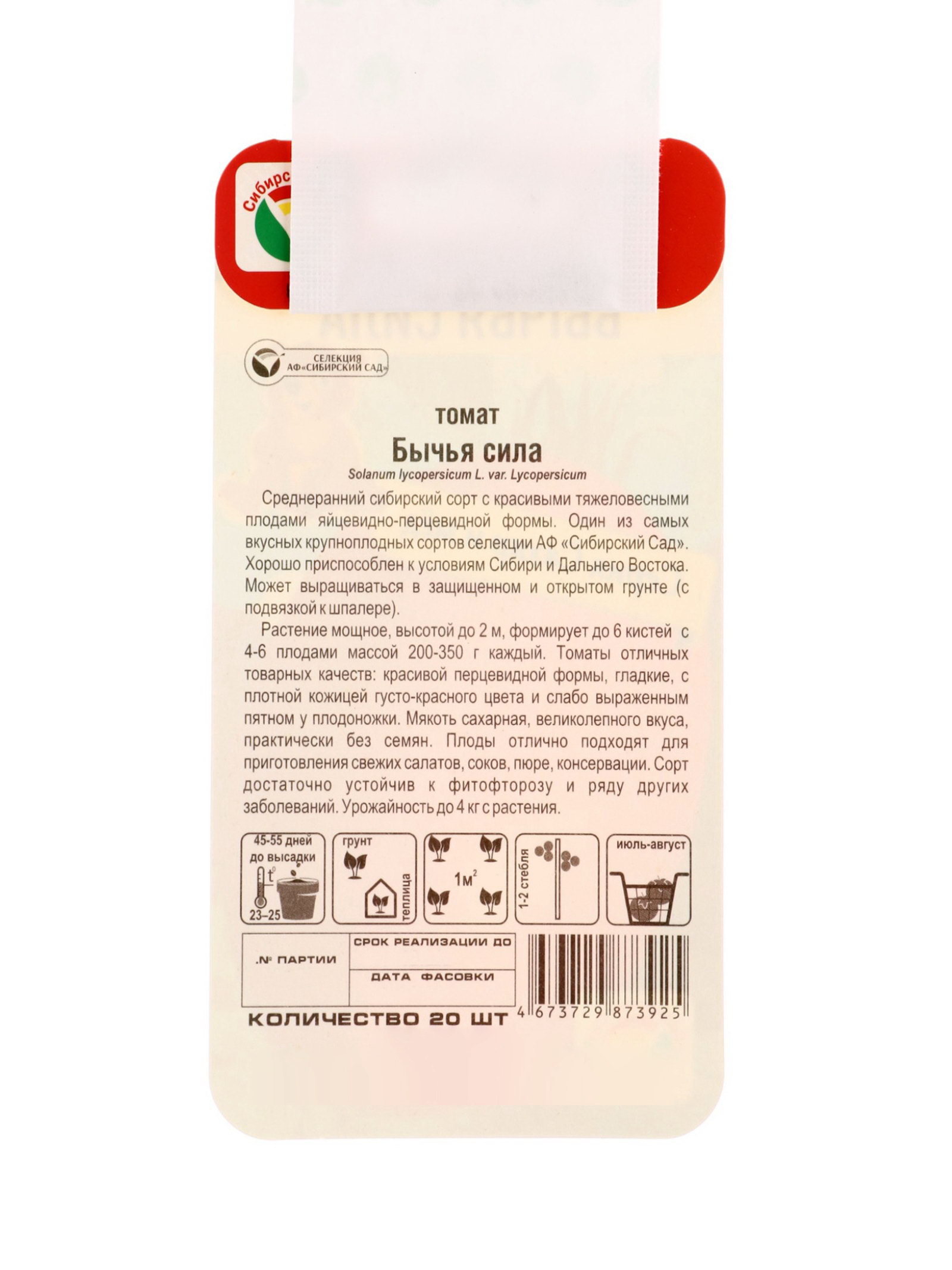 Семена Томат "Бычья сила", 20 шт., Сибирский сад, Россия