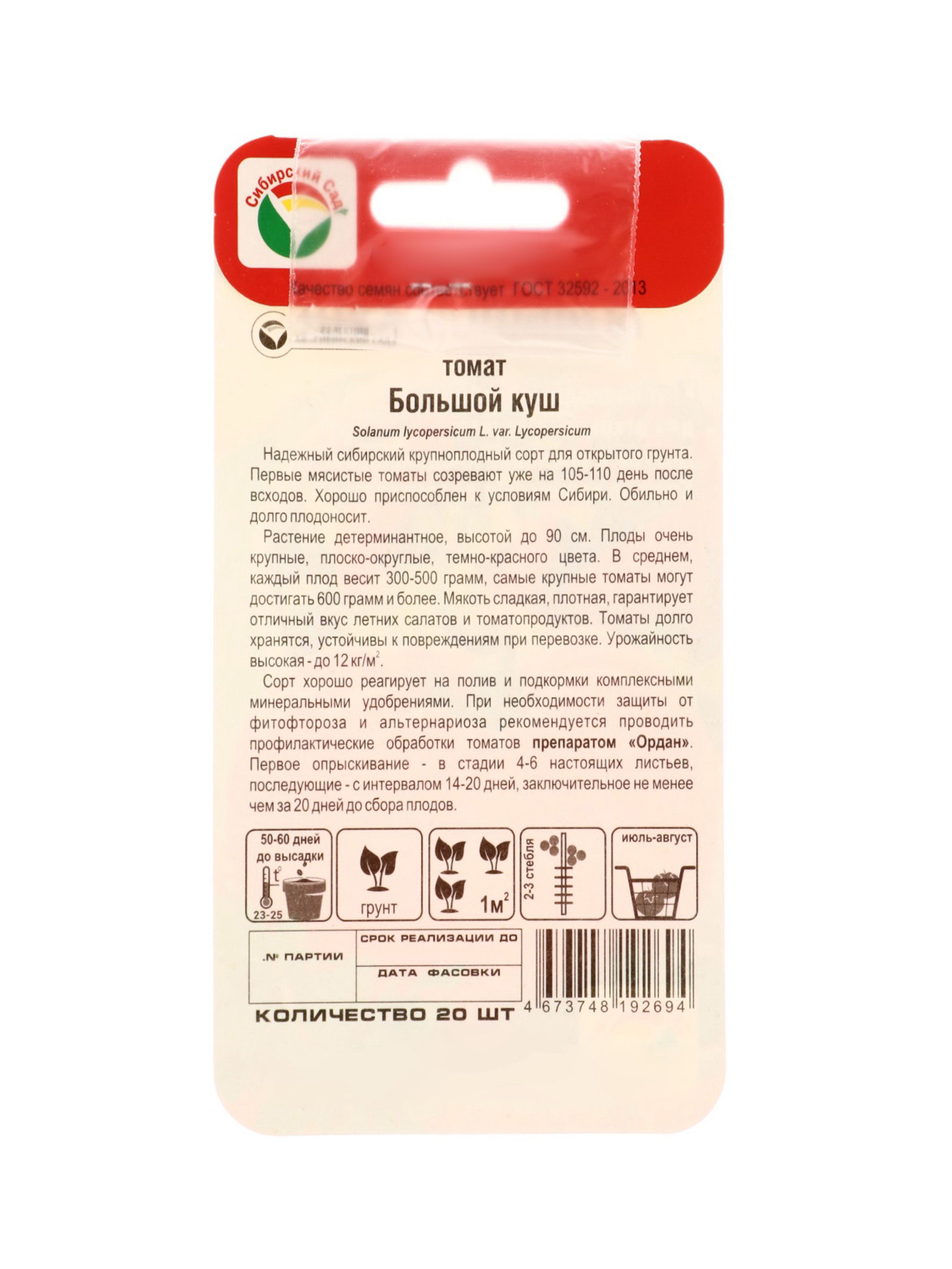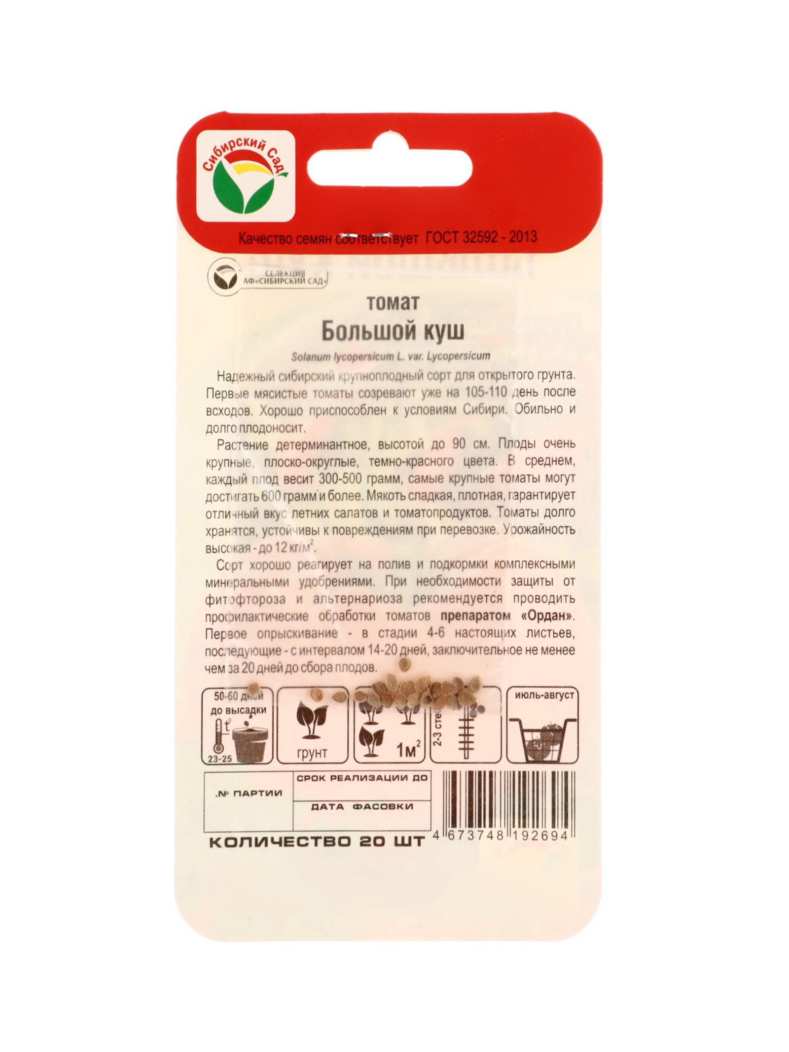 Семена Томат "Большой куш", 20 шт., Сибирский сад, Россия