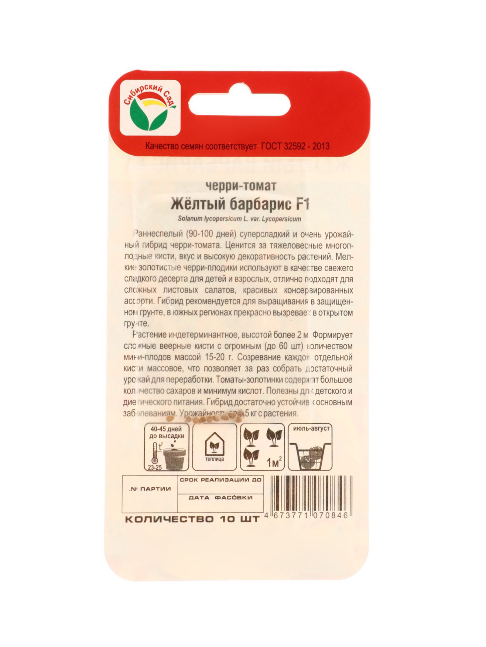 Семена Томат Черри "Желтый барбарис", F1.10 шт., Сибирский сад, Россия