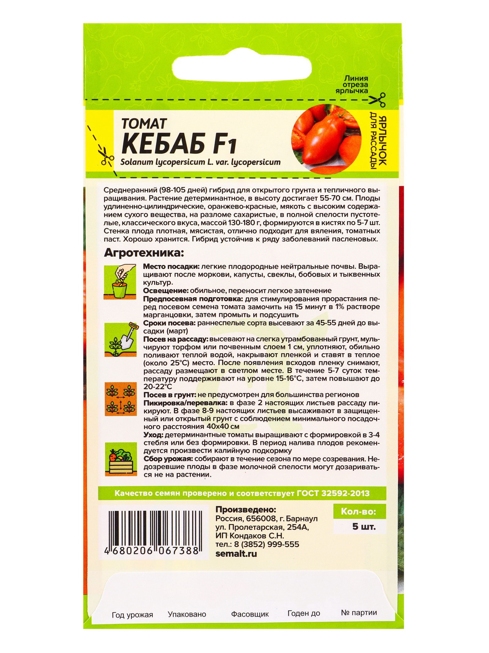 Томат Кебаб F1/Cем Алт/цп 5 шт. НОВИНКА!, Семена Алтая, Россия