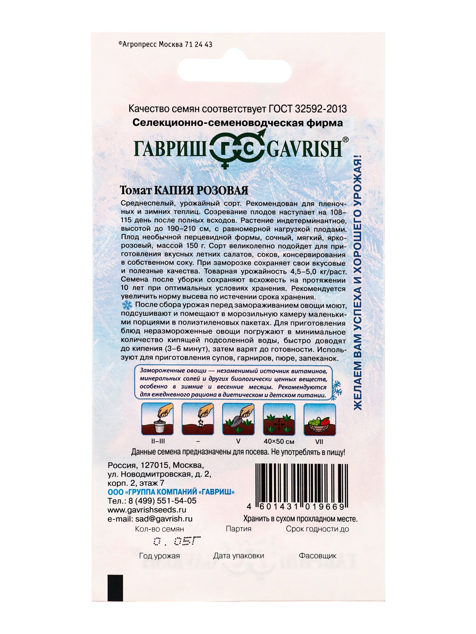 Семена Томат Капия розовая 0.05 г серия Заморозь!, Гавриш, Россия