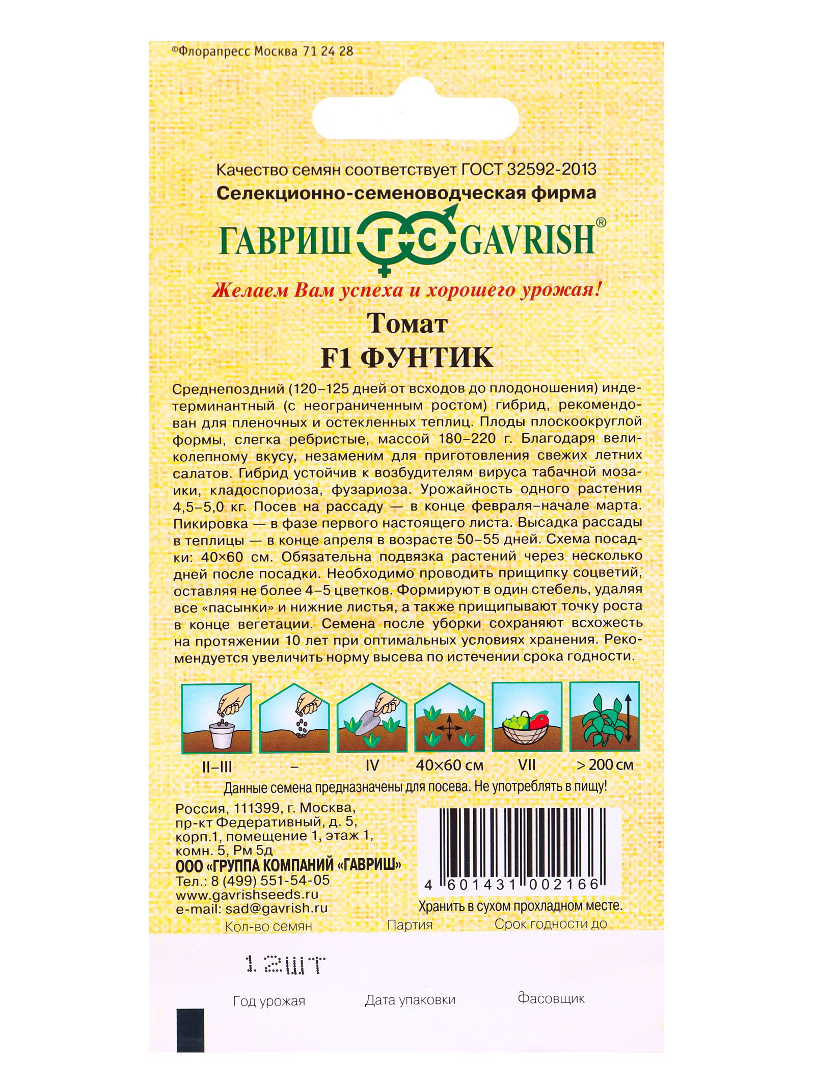 Семена Томат Фунтик F1 12 шт. автор. DH, Гавриш, Россия