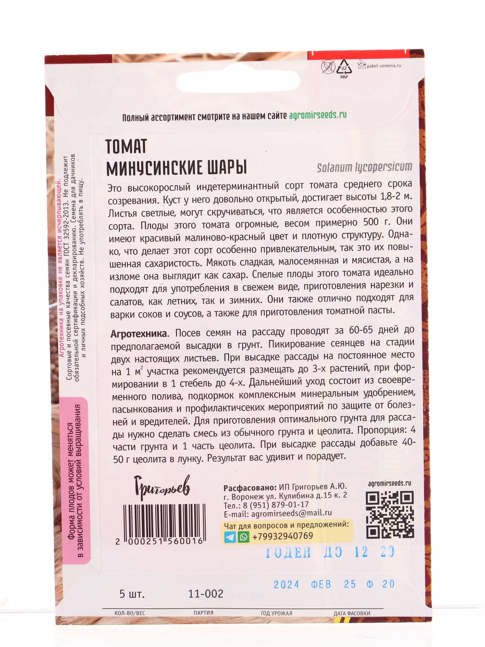Размер упаковки: 11.5 x 0.1 x 15 см. tnved: 1209918000 Температурное ограничение: Нет Применение: Универсальное Цвет: Красный Тип роста: Индетерминантный (высокорослый) Вес: Суперкрупноплодные (свыше 200 г) Сорт или гибрид: Сорт Сроки созревания: Средний Форма томатов: Круглые Место выращивания: Универсальный Нуждаются в пасынковании: Да | ||