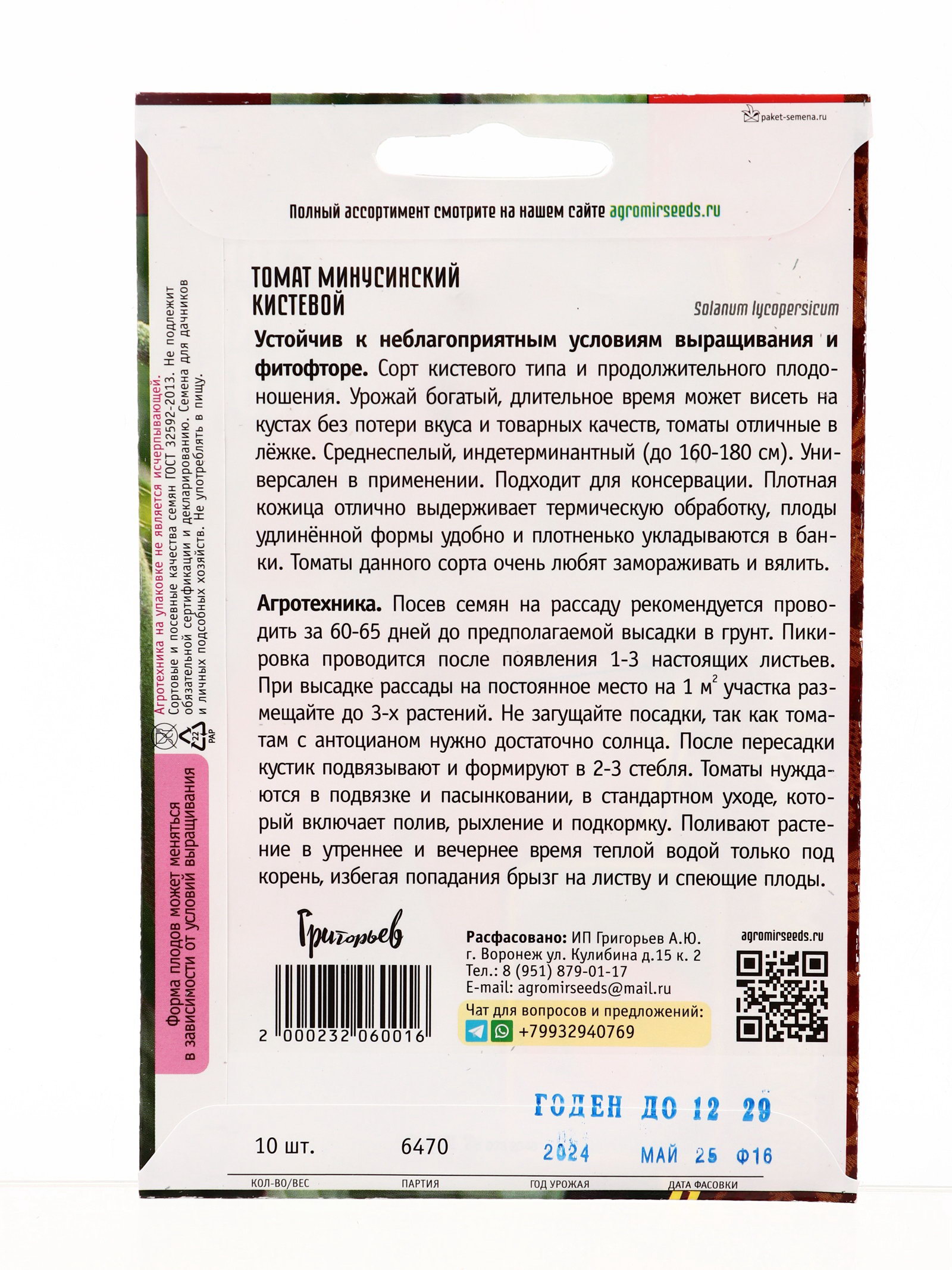 Семена Томат Минусинский Кистевой 10 шт. 12.29 гр, Григорьев, Россия