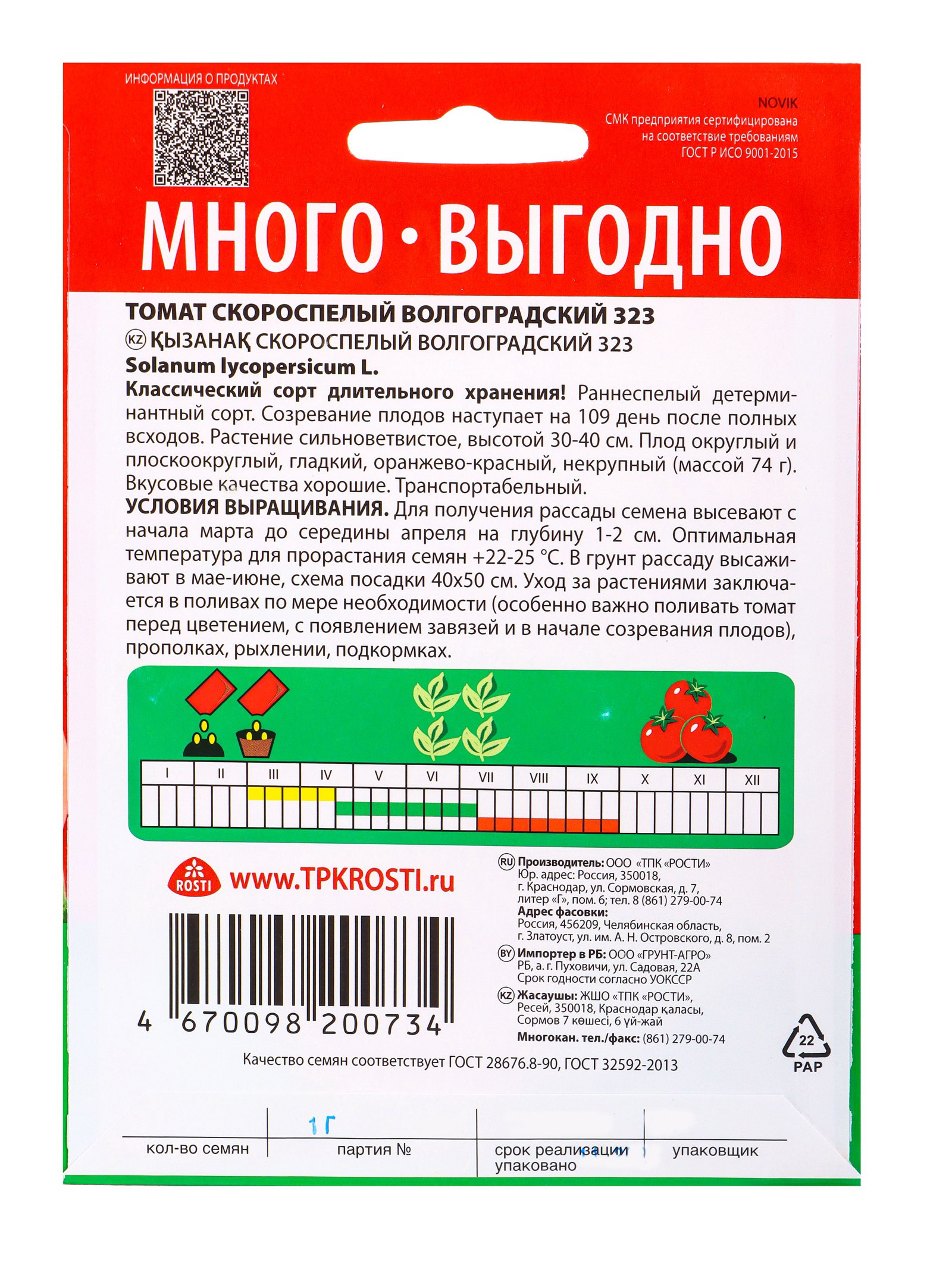 Семена Томат Волгоградский 323, семена Много-Выгодно 1г, Агроуспех, Россия