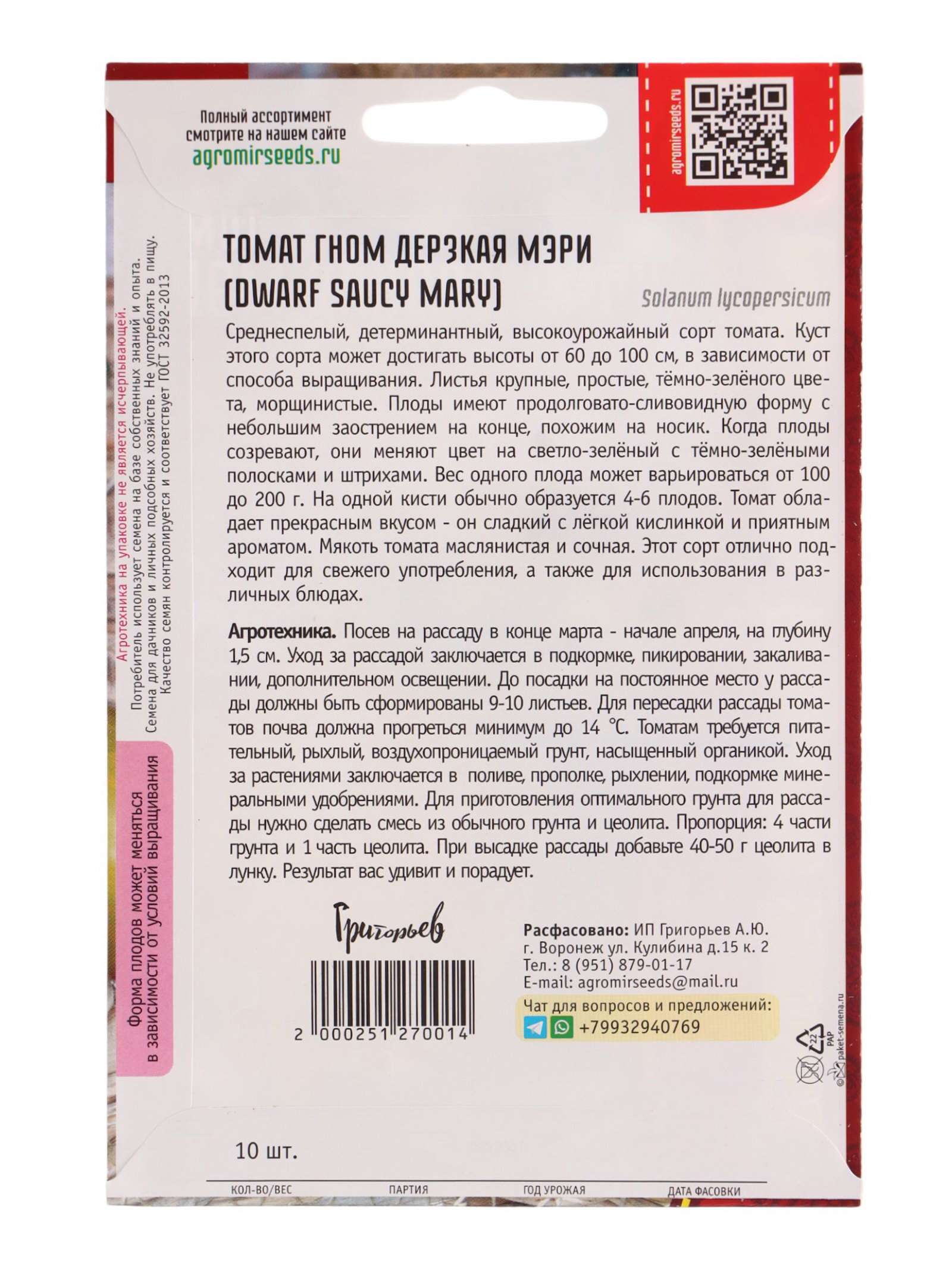 Семена Томат Гном Дерзкая Мэри, Григорьев, Россия