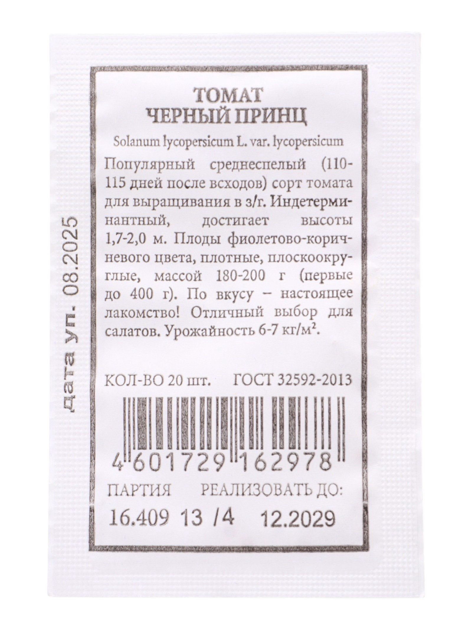 Семена Томат "Черный принц" 20 шт., 5x14x0.1 см., Китай