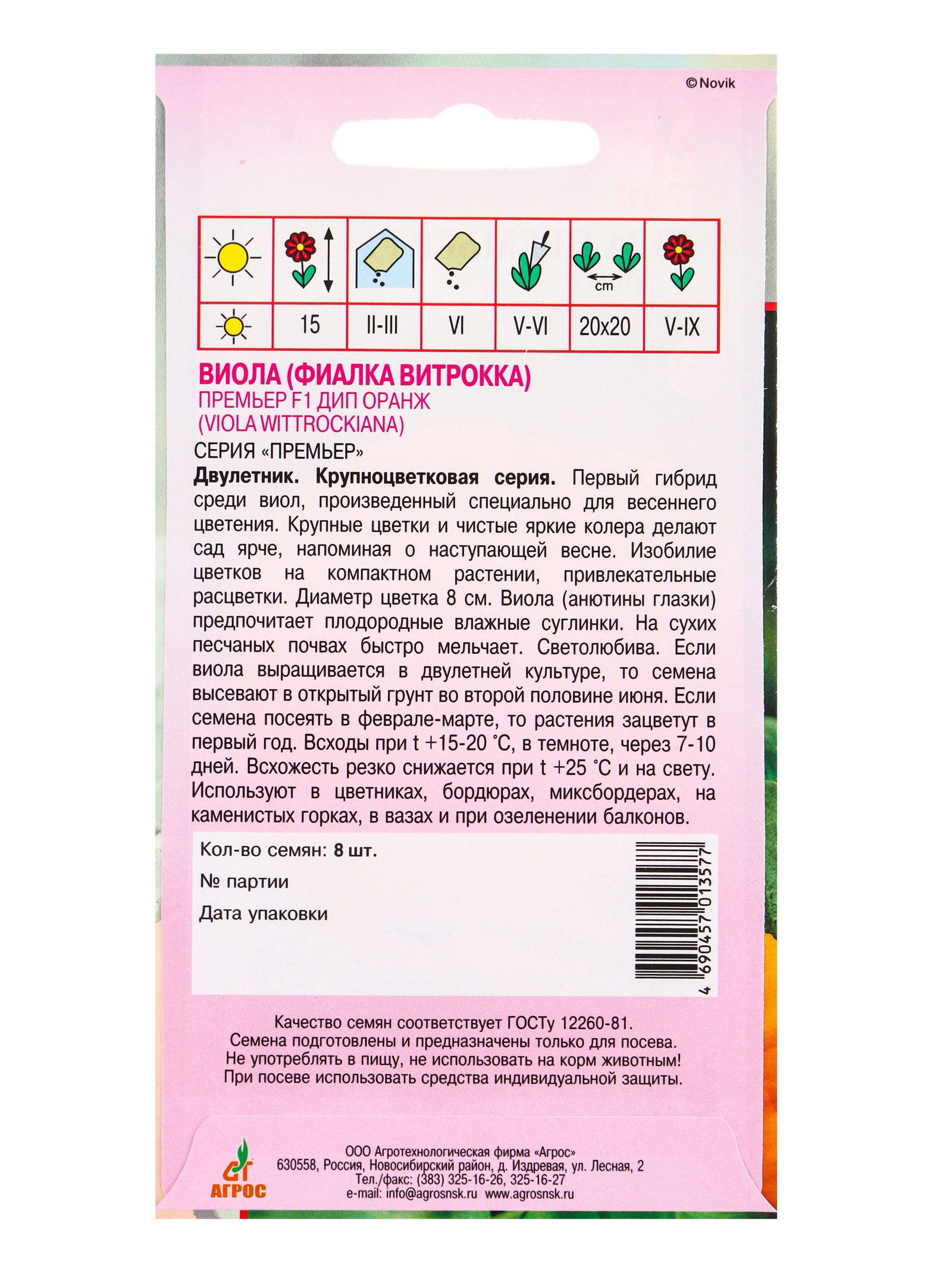 Семена Виола "Премьер" F1 Дип Оранж 8 шт, Агросс, Россия