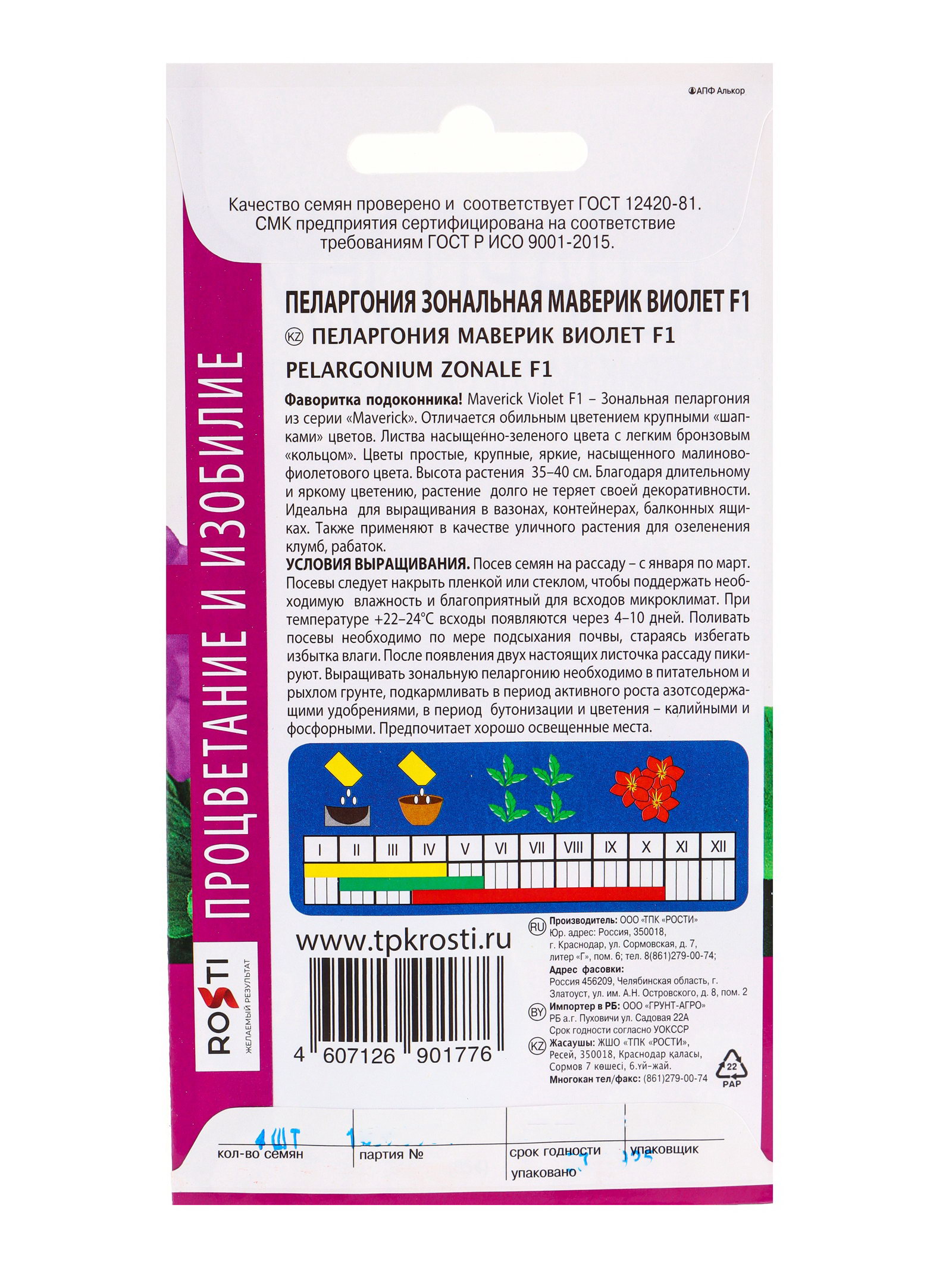 Набор семян комнатных Пеларгония "Виолет", 3 шт., 9x17x1 см., Мой выбор, Россия