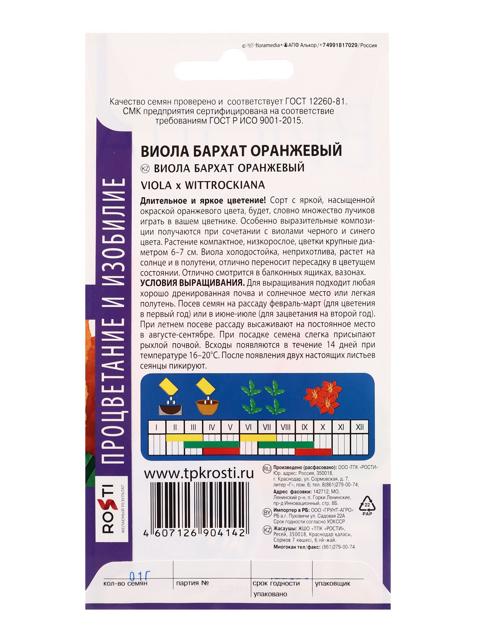 Семена цветов Виола "Бархат", оранжевый, Дв, 0.1 г, Агроуспех, Россия