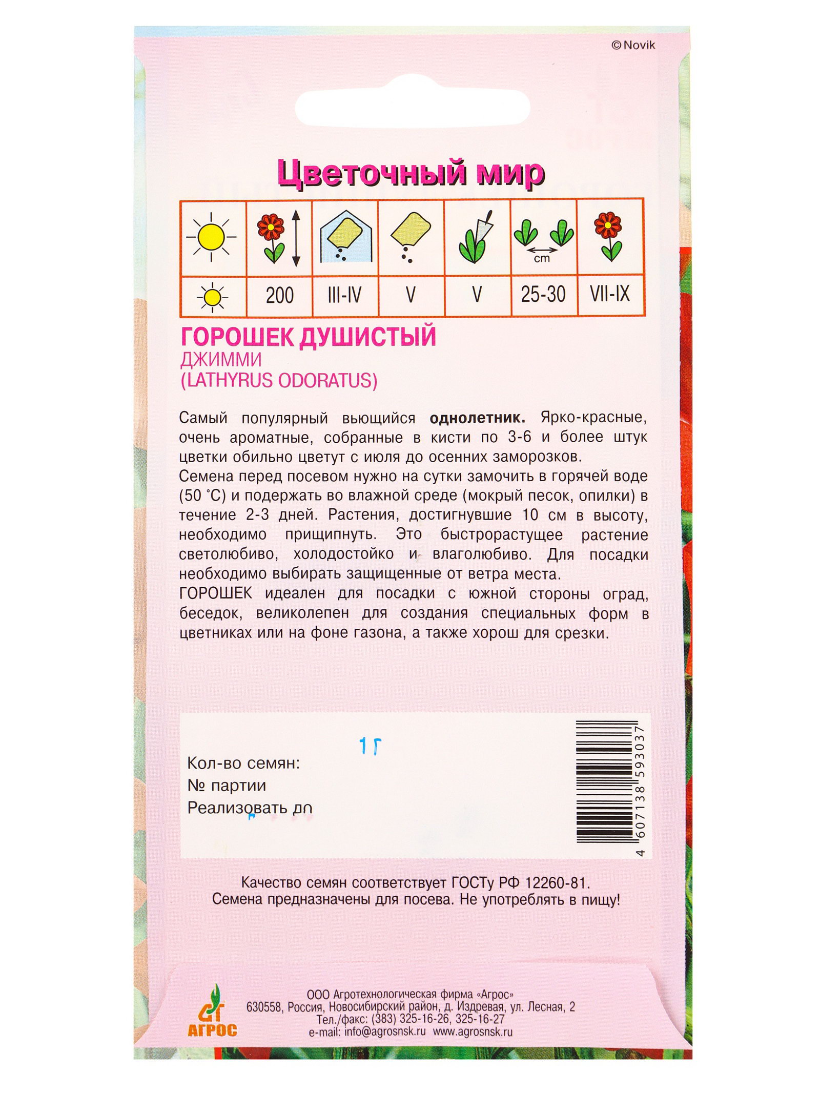 Семена Горошек душистый Джимми 1 г, Агросс, Россия