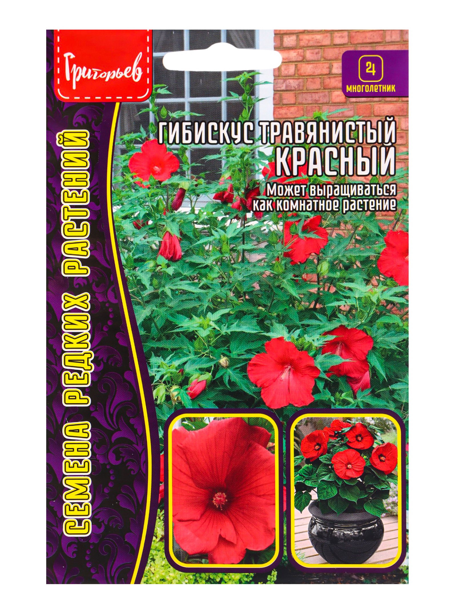 Семена цветов Гибискус Красный травянистый 5 шт. 12.29 гр, Григорьев, Россия