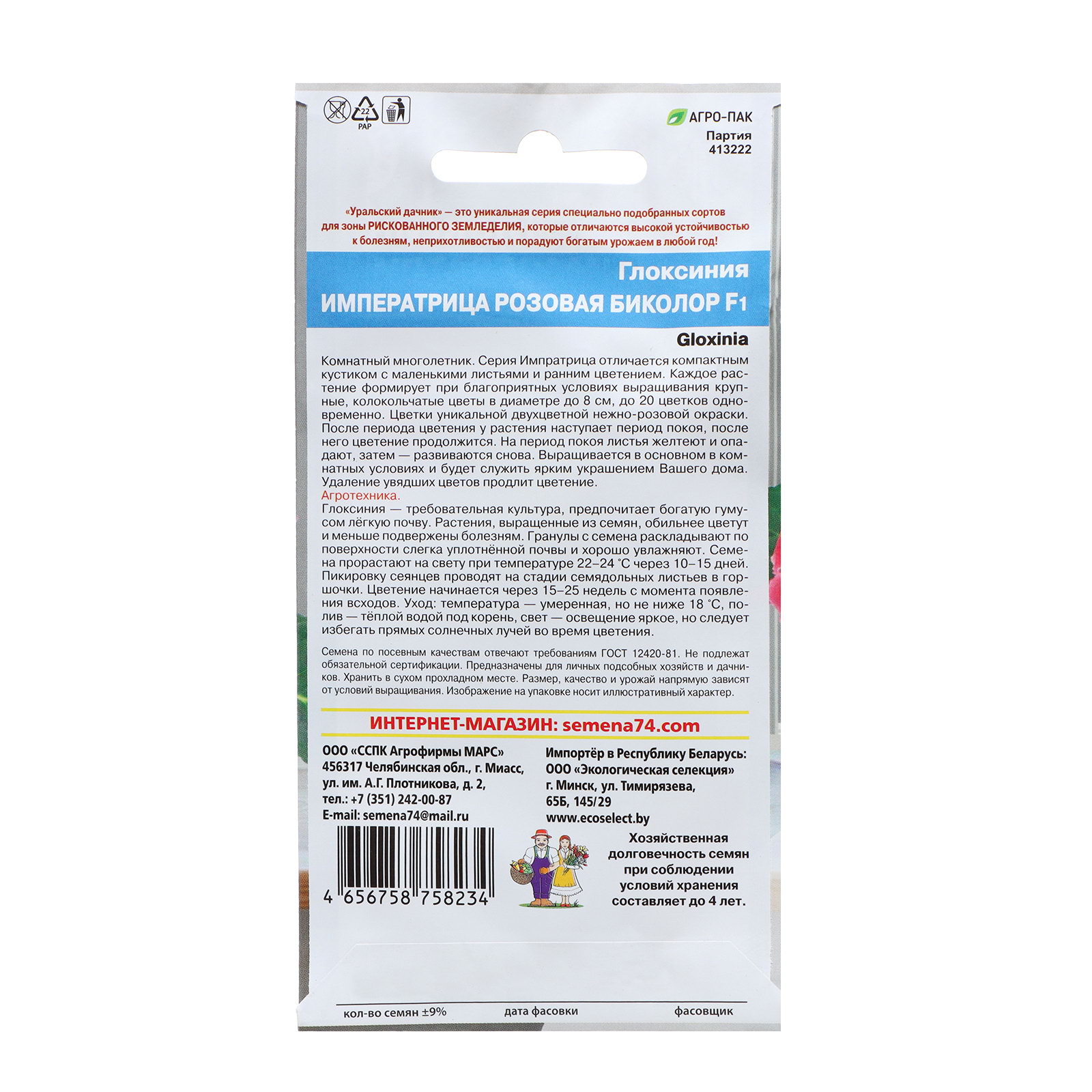 Семена Цветов Глоксиния "Императрица" розовая биколор, 6 шт, Уральский Дачник, Россия