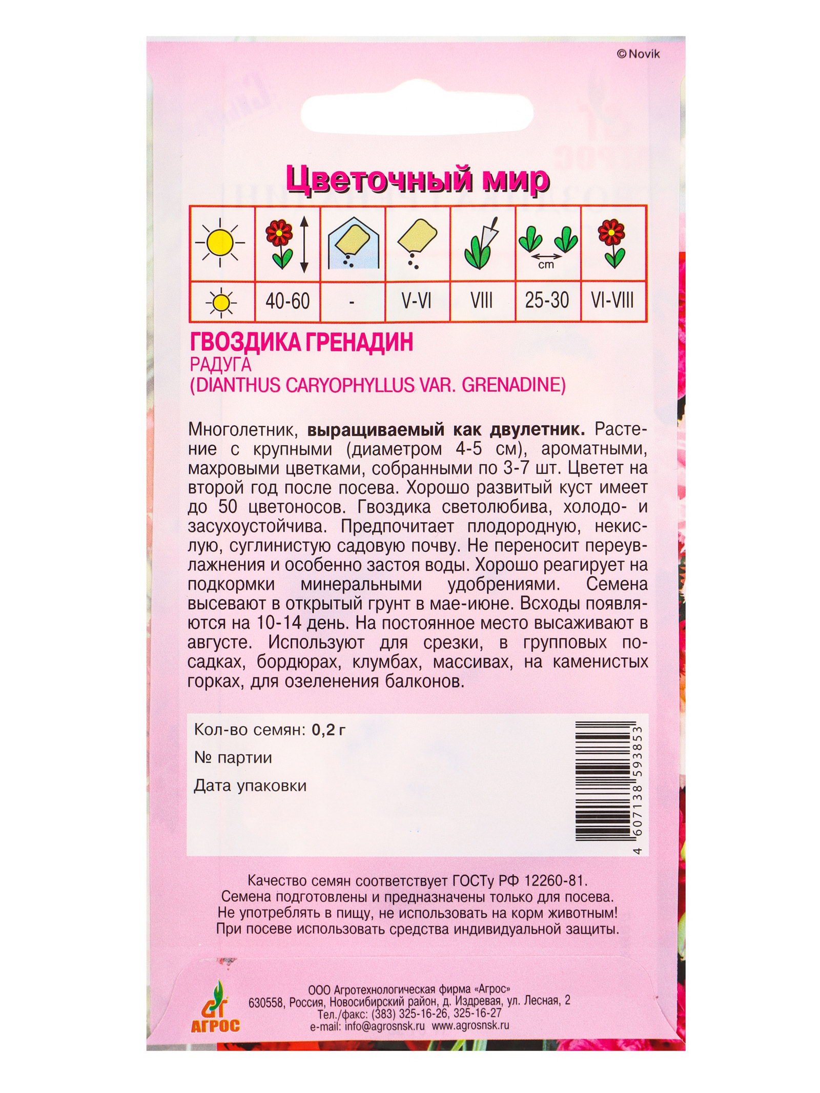 Семена Гвоздика Гренадин Радуга 0.2 г, Агросс, Россия