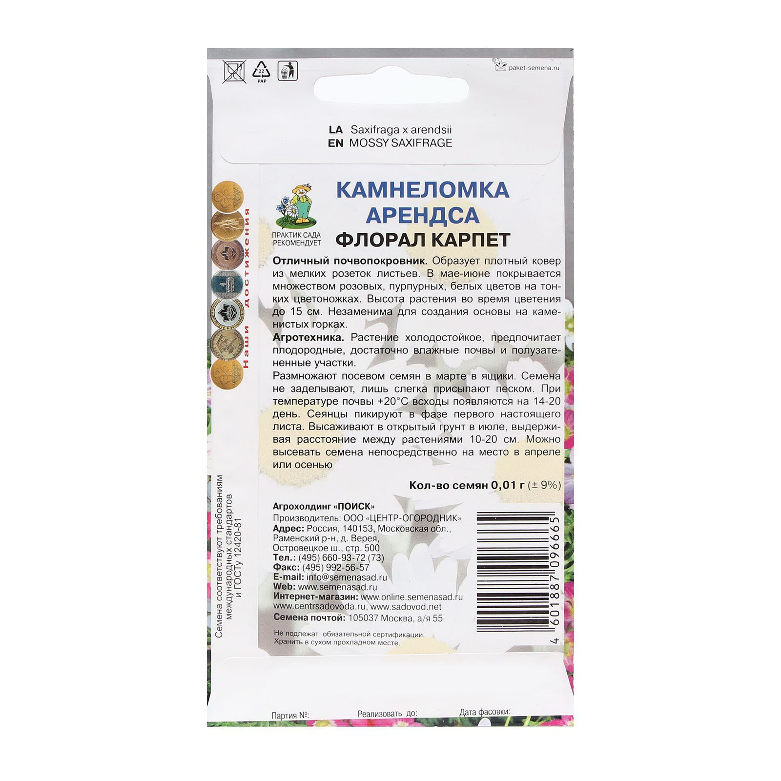 Семена цветов Камнеломка "Арендса Флорал карпет" 0.01 г, "Поиск", ПОИСК, Нидерланды