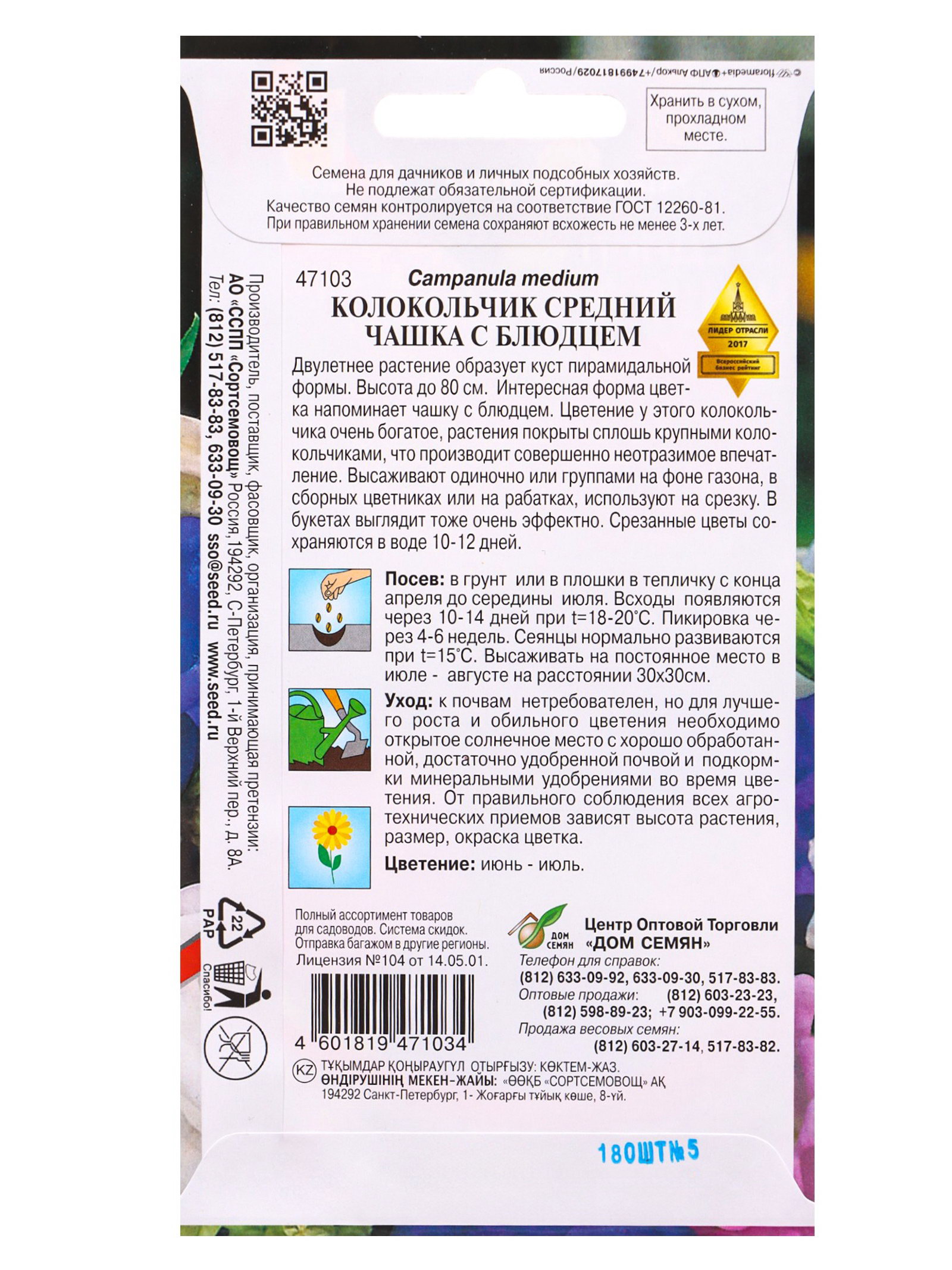 Набор семян Колокольчик многолетний "Чашка с Блюдцем", 180 семян, 15x17x5 см., Мой выбор, Россия