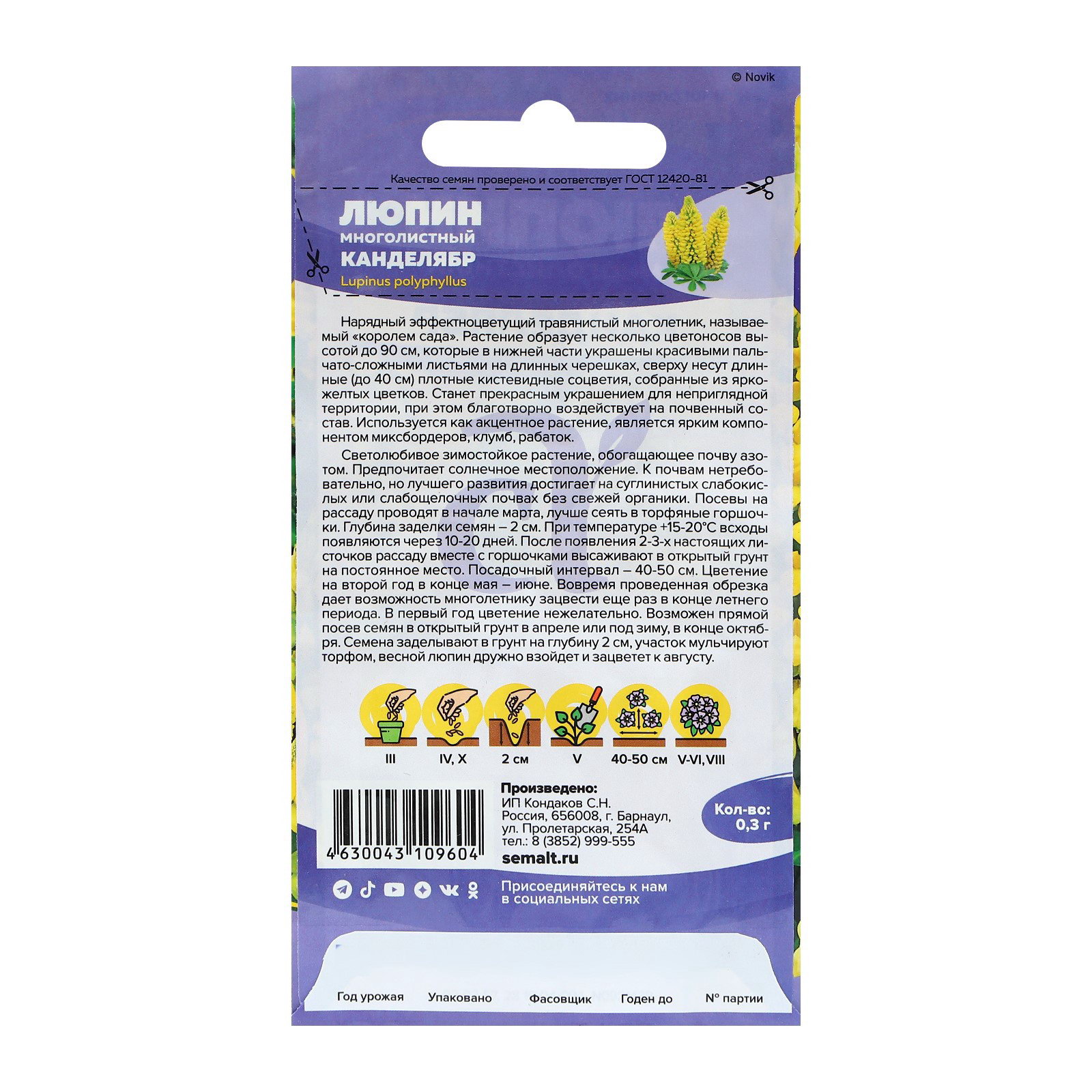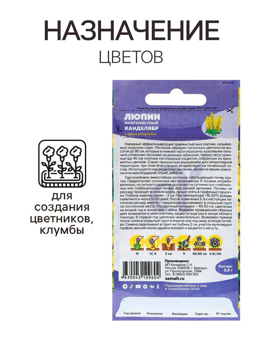 Семена Люпин "Канделябр", ц/п, 0.3 гр, Семена Алтая, Россия