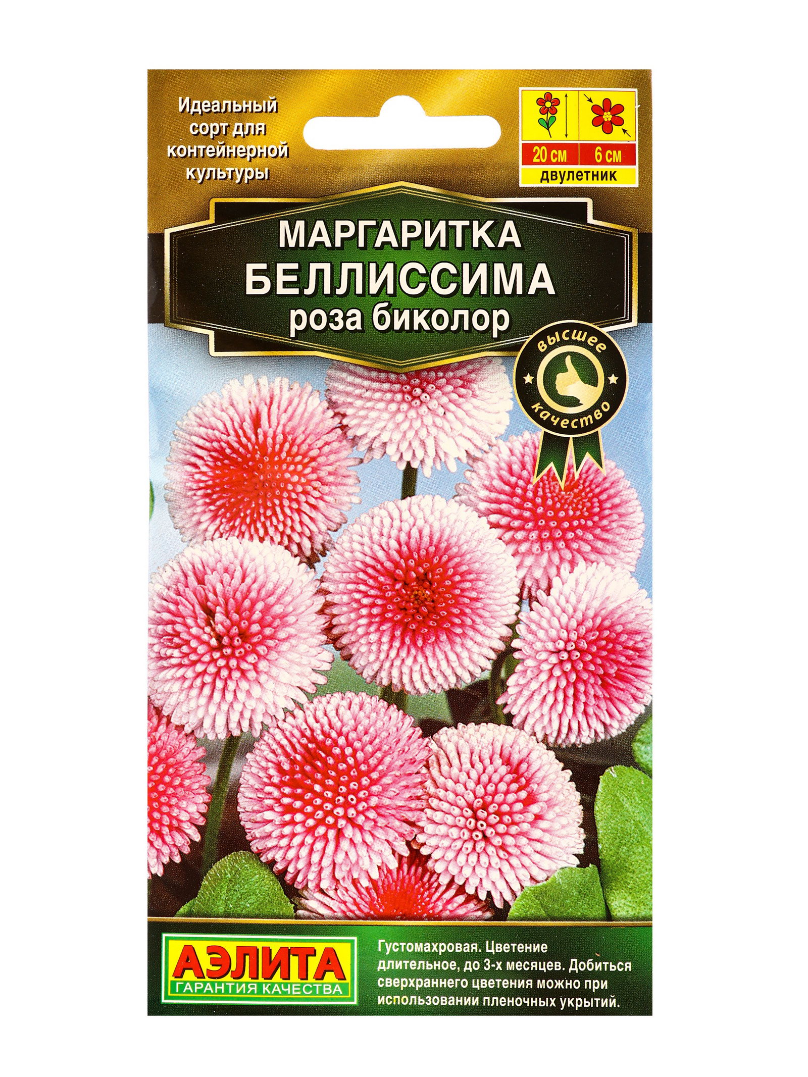 Семена цветов Маргаритка Беллиссима роза биколор Дв, Агрофирма АЭЛИТА, Мексика