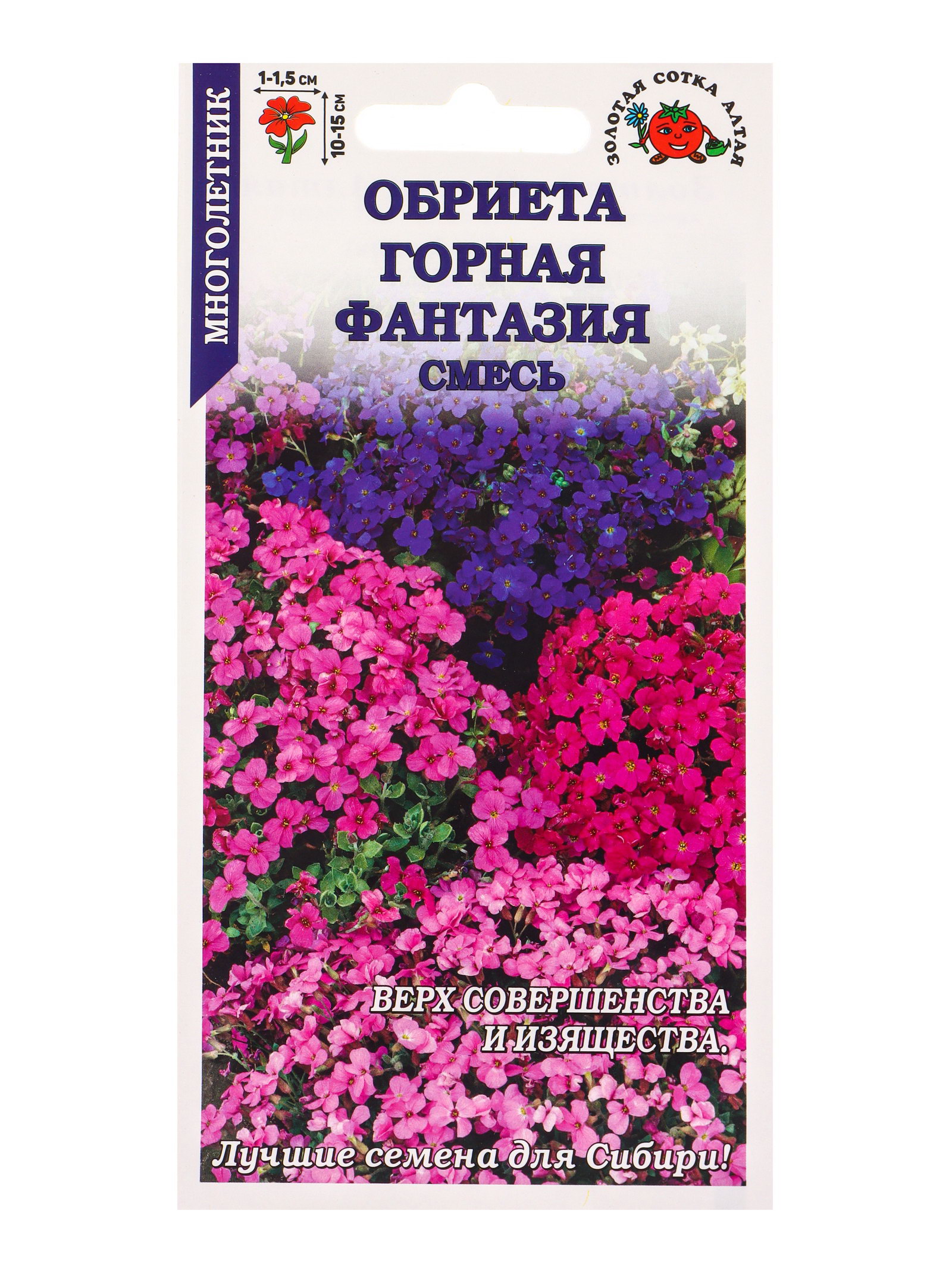 Семена Обриета Горная Фантазия /Сотка/ 0.05г/ смесь h-15см/*1500, Золотая Сотка Алтая, Россия
