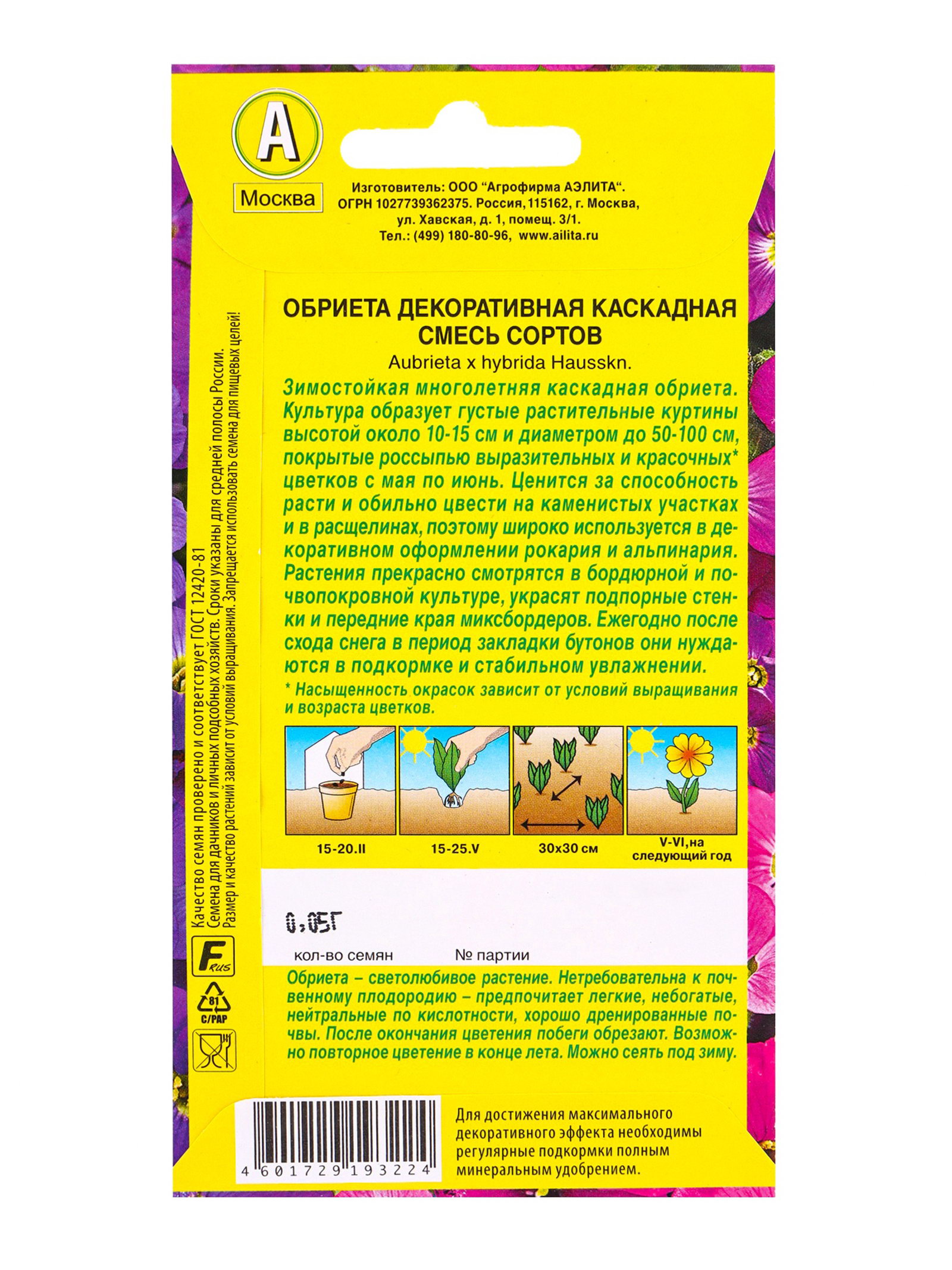 Семена цветов Обриета Декоративная каскадная, смесь сортов Мн, Ц/П,0.05 г, Агрофирма АЭЛИТА, Польша