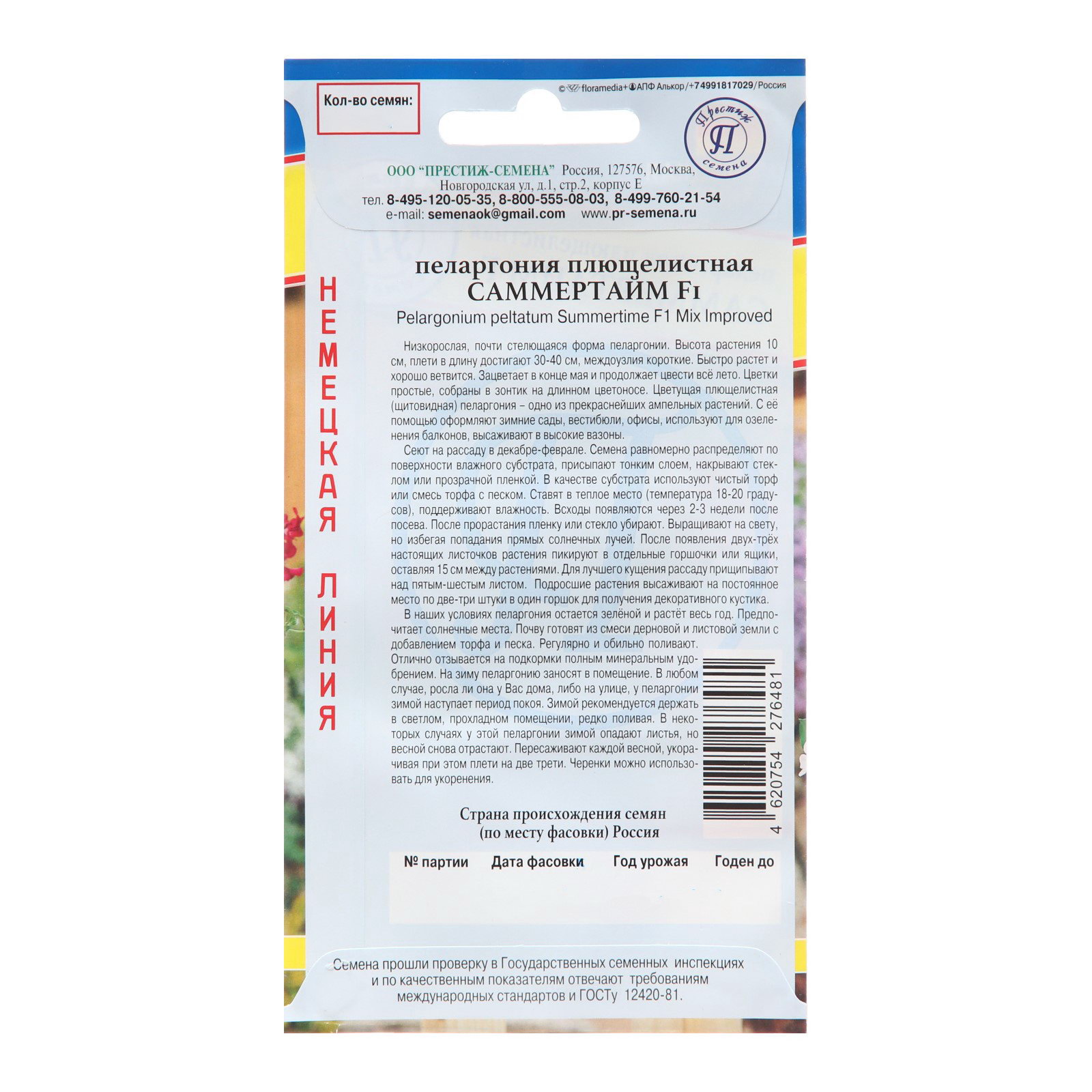 Семена комнатных цветов Пеларгония "Саммертайм", Смесь F1, 5 шт., Престиж семена, Россия