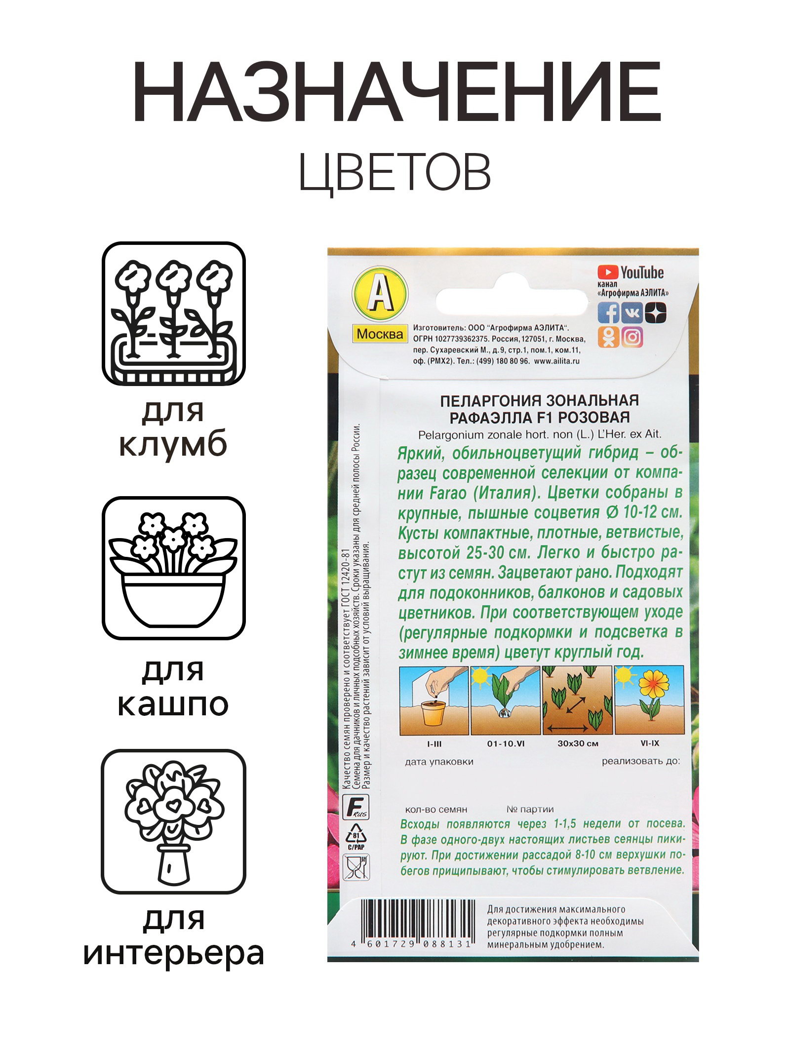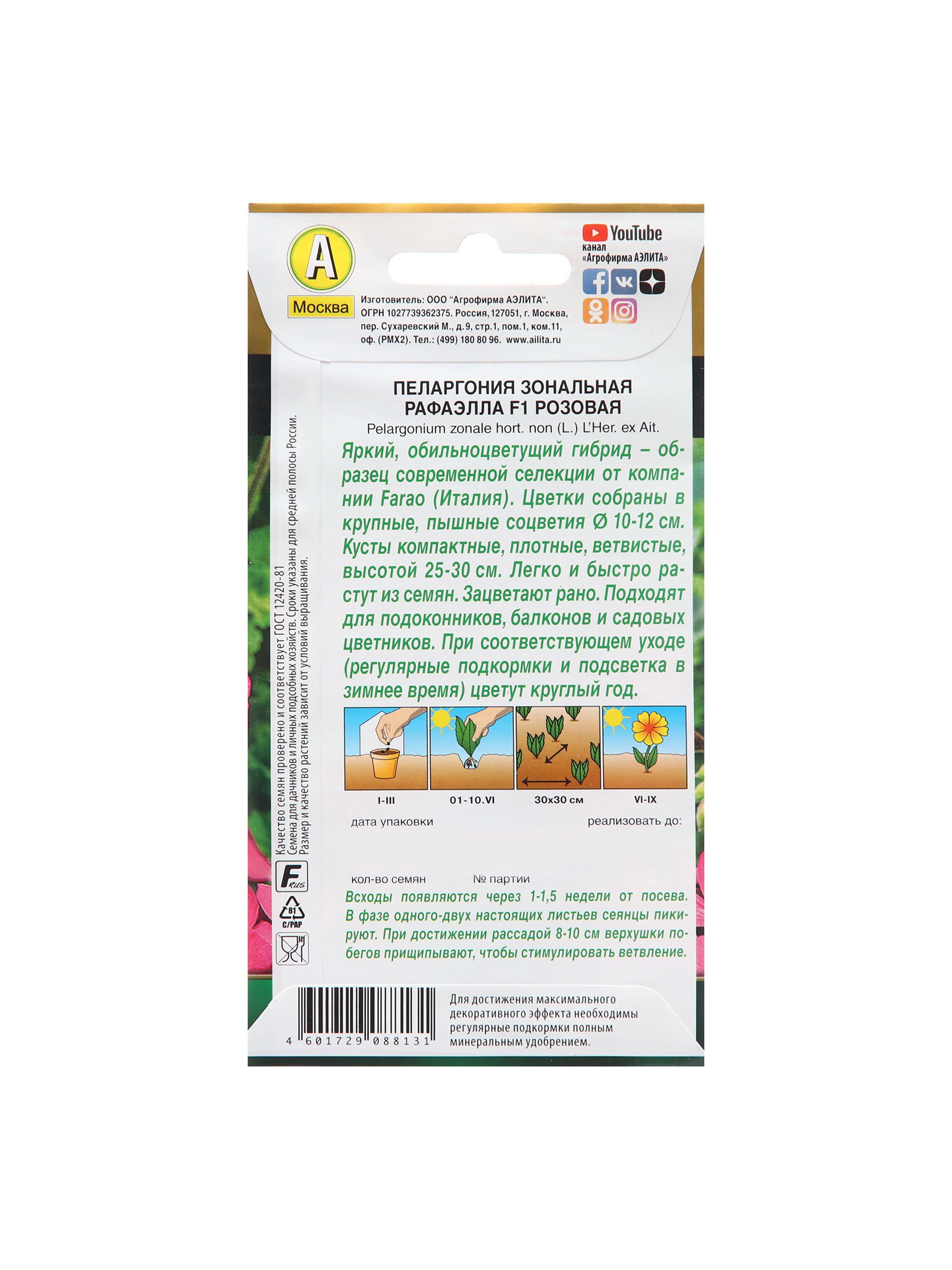 Семена цветов Пеларгония "Рафаэлла", розовая, 5 шт, F1, Агрофирма АЭЛИТА, Италия