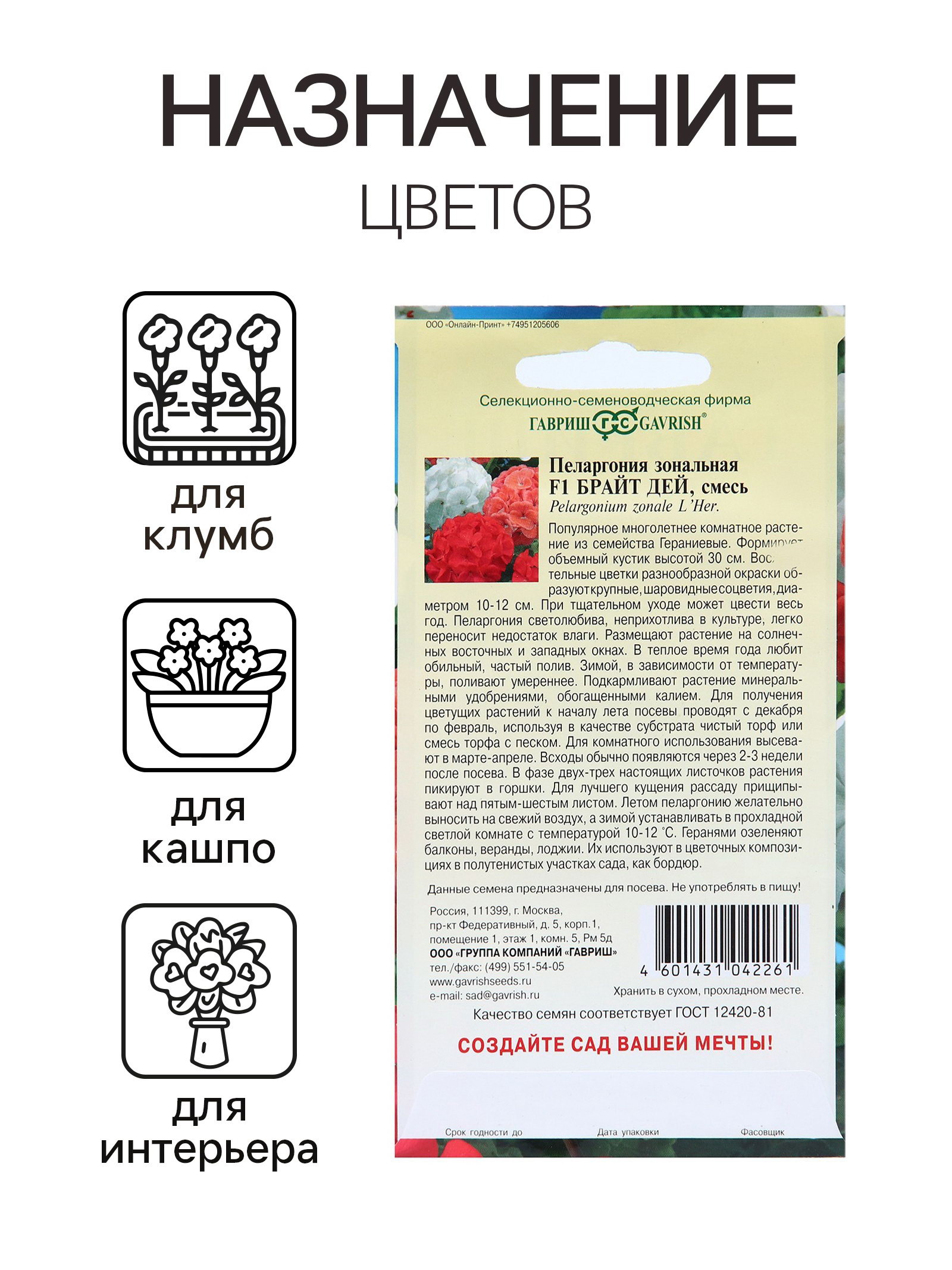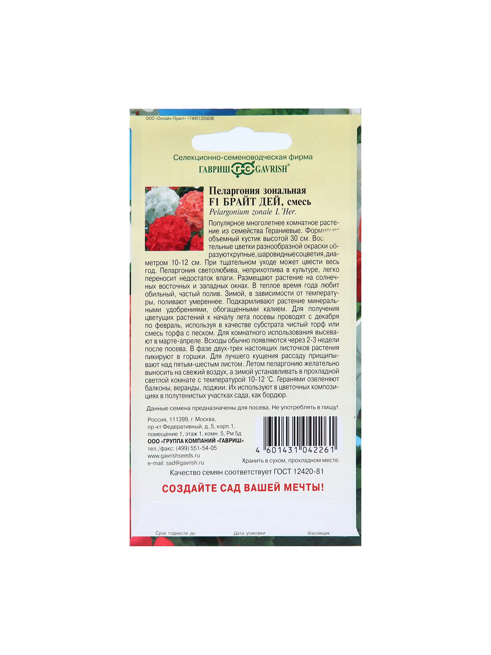 Вегетация: Многолетники, Однолетники Особенности выращивания: Комнатное выращивание, Открытый грунт, Подоконник, балкон Посев на рассаду: Декабрь, Март, Ноябрь, Февраль, Январь Посев (посадка) в грунт: Апрель, Июль, Июнь, Май, Март Вид: Пеларгония, Семечки Цветение период: Апрель, Июль, Июнь, Май Агрономический срок годности, лет: 3, 5 Размер упаковки: 8 x 0.2 x 15 см. Сухоцвет: Нет Махровые: Нет Назначение: Для создания цветников, клумбы По форме куста: Кустовая Отношение к свету: Рассеянный свет Подходит для балкона: Да Разновидность: Цветущее Нуждаются ли в стратификации: Нет Высота, см: 40 tnved: 1209300000 tnved: 1209300000 Высота растений: До 30 см Температурное ограничение: Нет Цвет: МИКС Популярное многолетние комнатное растение из семейства Гераниевых. В пору обильного цветения герань придает окнам праздничный вид. Формирует объемный и компактный кустик высотой 35 см, диаметром 25 см Листья зеленые, с характерным темным рисунком. Восхитительные цветки разнообразной окраски образуют крупные, шаровидные соцветия. При тщательном уходе может цвести весь год. Пеларгония светолюбива, неприхотлива в культуре, легко переносит недостаток влаги. Размещают растение на солнечных восточных и западных окнах. В теплое время года любит обильный, частый полив. Зимой, в зависимости от температуры, поливают умереннее. Подкармливают растение минеральными удобрениями, обогащенными калием. Для получения цветущих растений к началу лета посевы производят с декабря по февраль, используя в качестве субстрата чистый торф или смесь торфа с песком. Для комнатного использования высевают в марте-апреле. Всходы обычно появляются через 2-3 недели после посева. В фазе двух-трех настоящих листочков растения пикируют в горшки. Для лучшего кущения рассаду прищипывают над пятым - шестым листом. Летом пеларгонию желательно выносить на свежий воздух, а зимой устанавливать в прохладной светлой комнате с температурой 10-12 °C. Геранями озеленяют балконы, веранды, лоджии. Их используют в цветочных композициях в полутенистых участках сада. | ||
