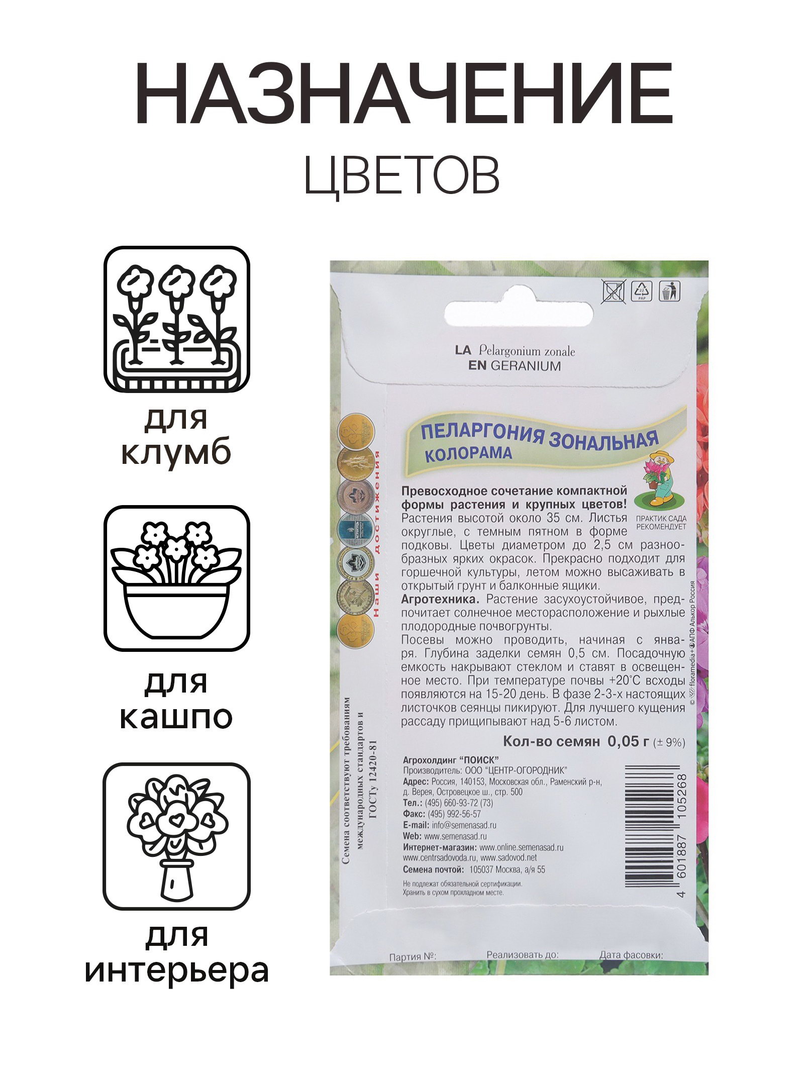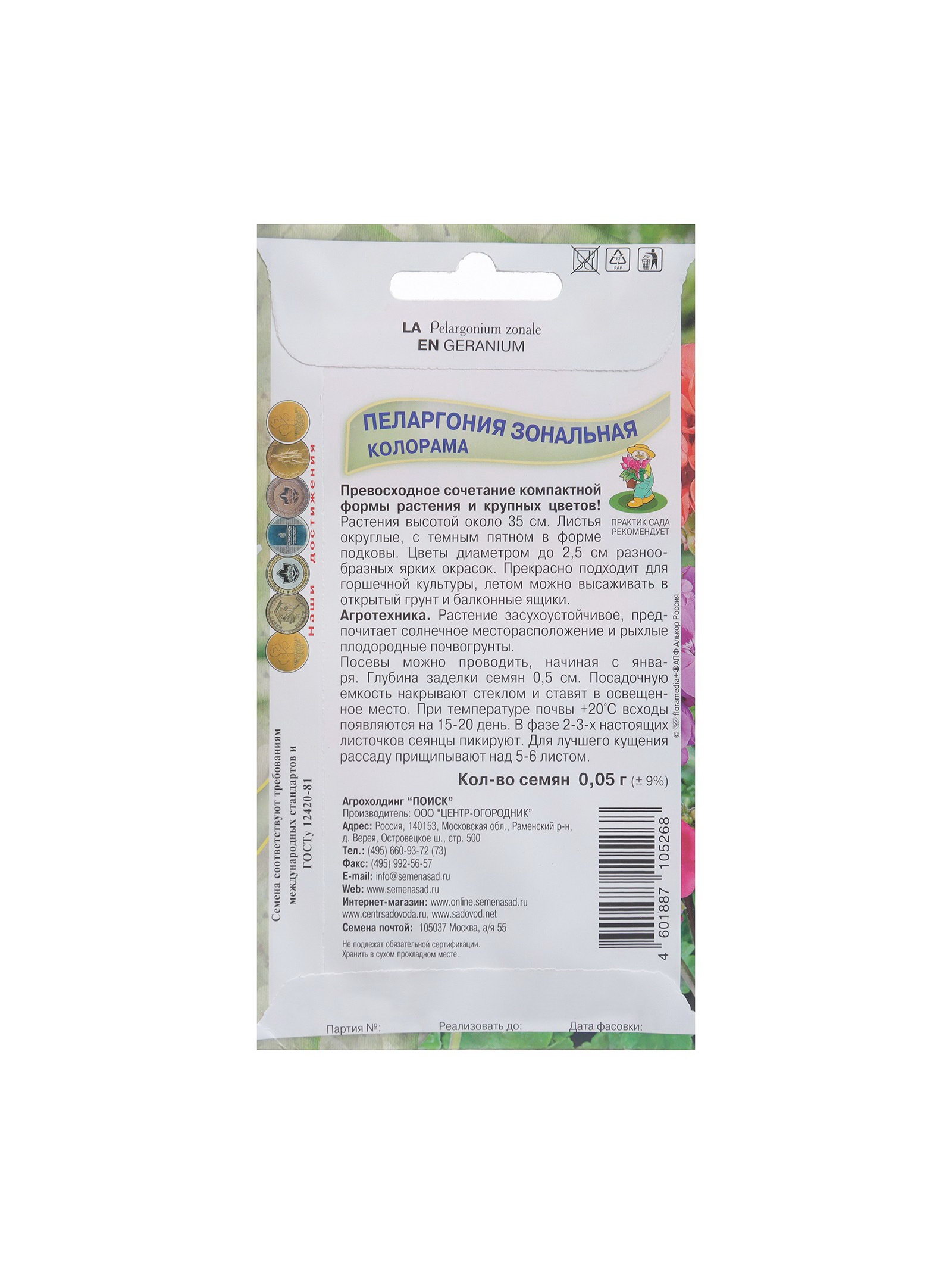 Семена цветов Пеларгония зональная "Колорама" 0.05 г, ПОИСК, Нидерланды