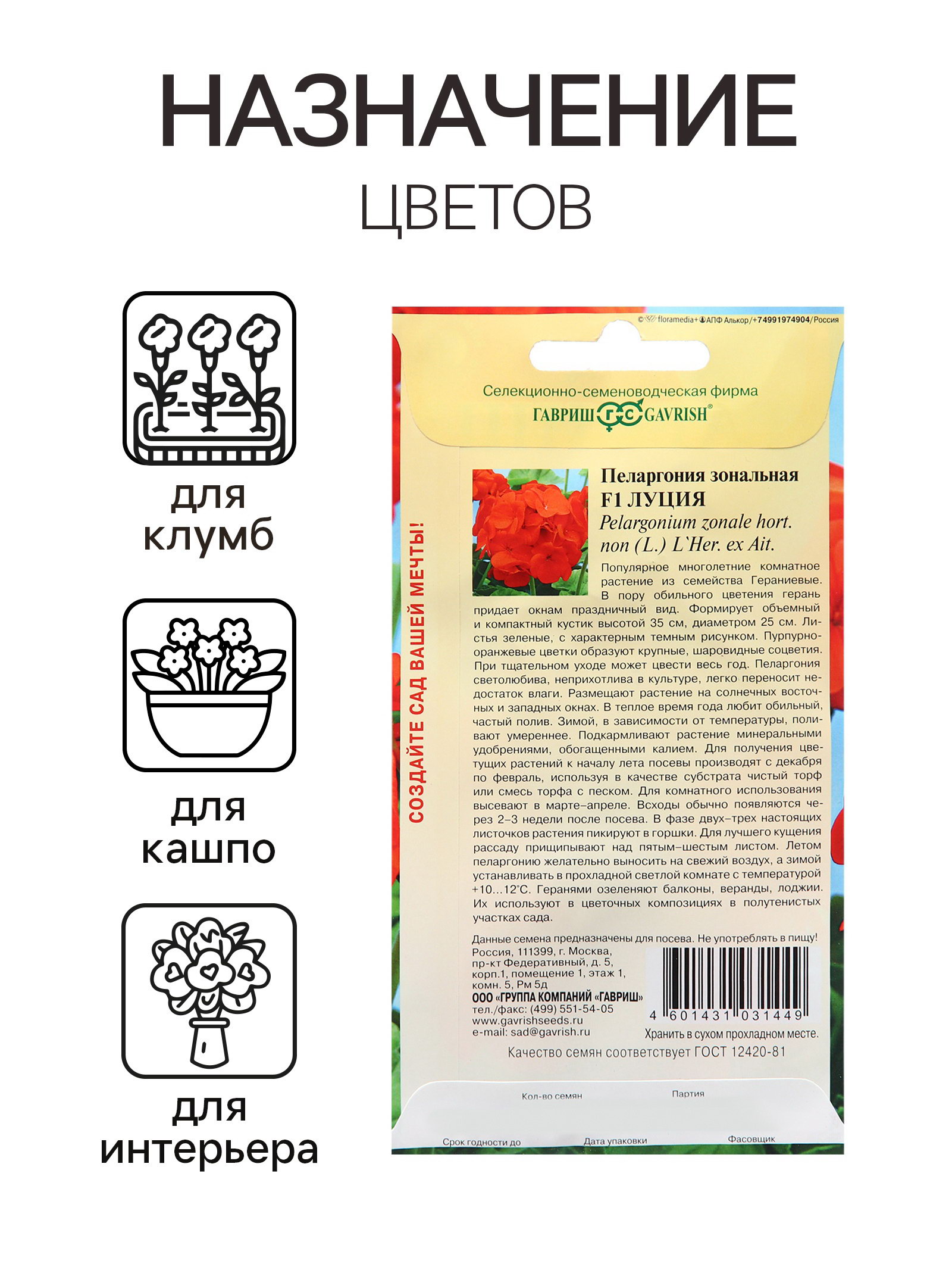 Семена Пеларгония "Луция", ц/п, F1, 4 шт., Гавриш, Россия