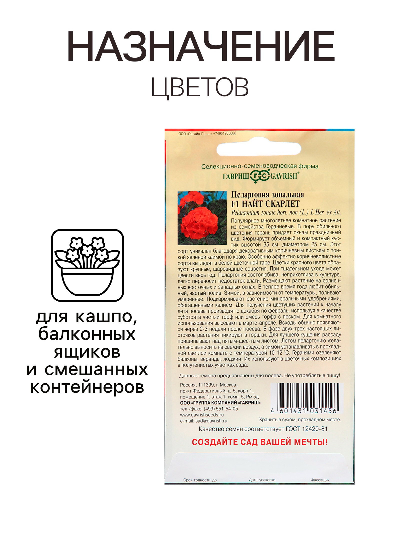 Семена Пеларгония "Найт Скарлет", ц/п, F1, 4 шт., Гавриш, Россия