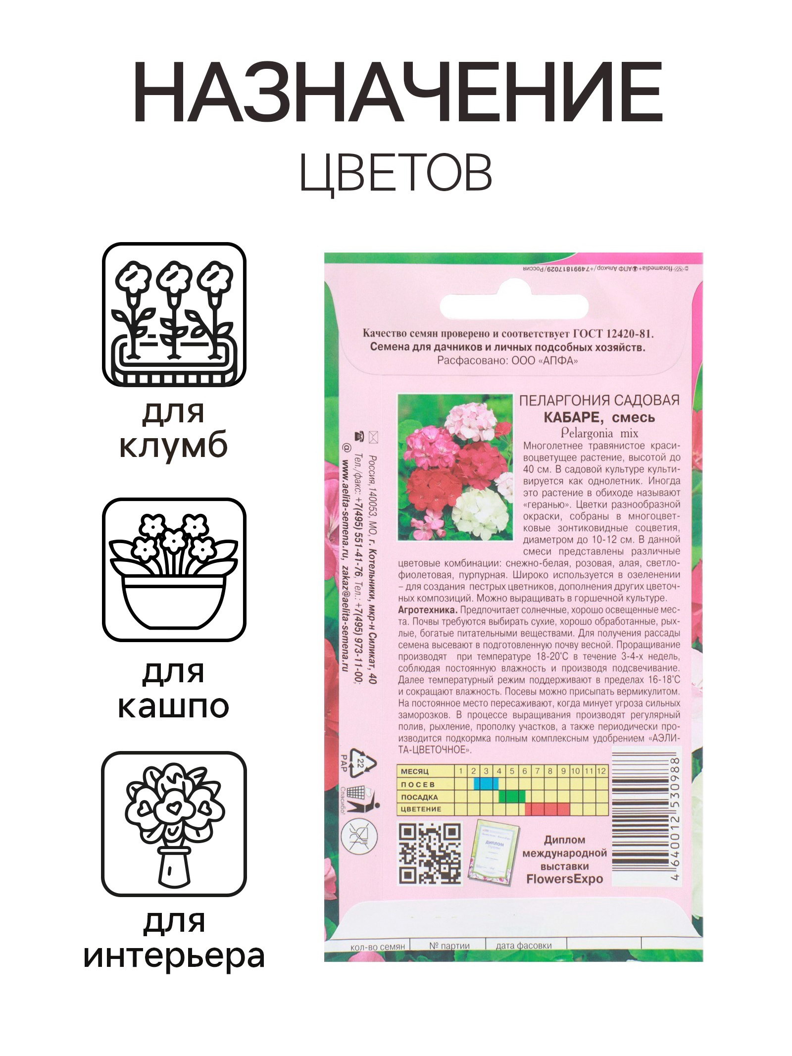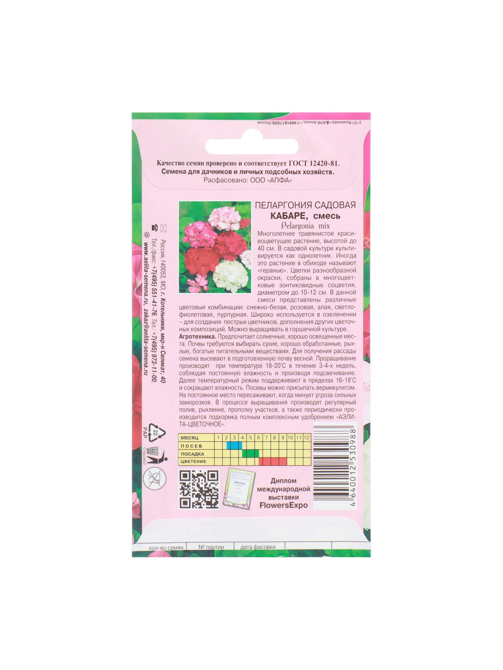 Семена цветов пеларгония "Кабаре садовая", 0.025 г, АЭЛИТА экстра, Россия