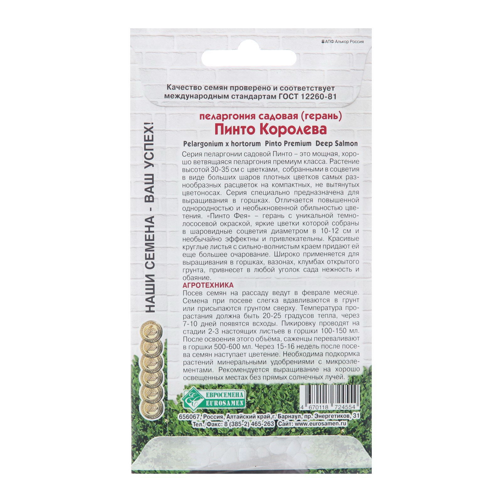Семена пеларгония садовая "Пинто Королева", 3 шт., Евросемена, Россия