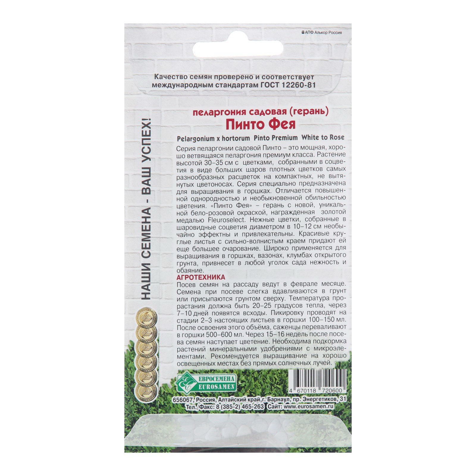 Семена пеларгония садовая "Пинто Фея", 3 шт., Евросемена, Россия