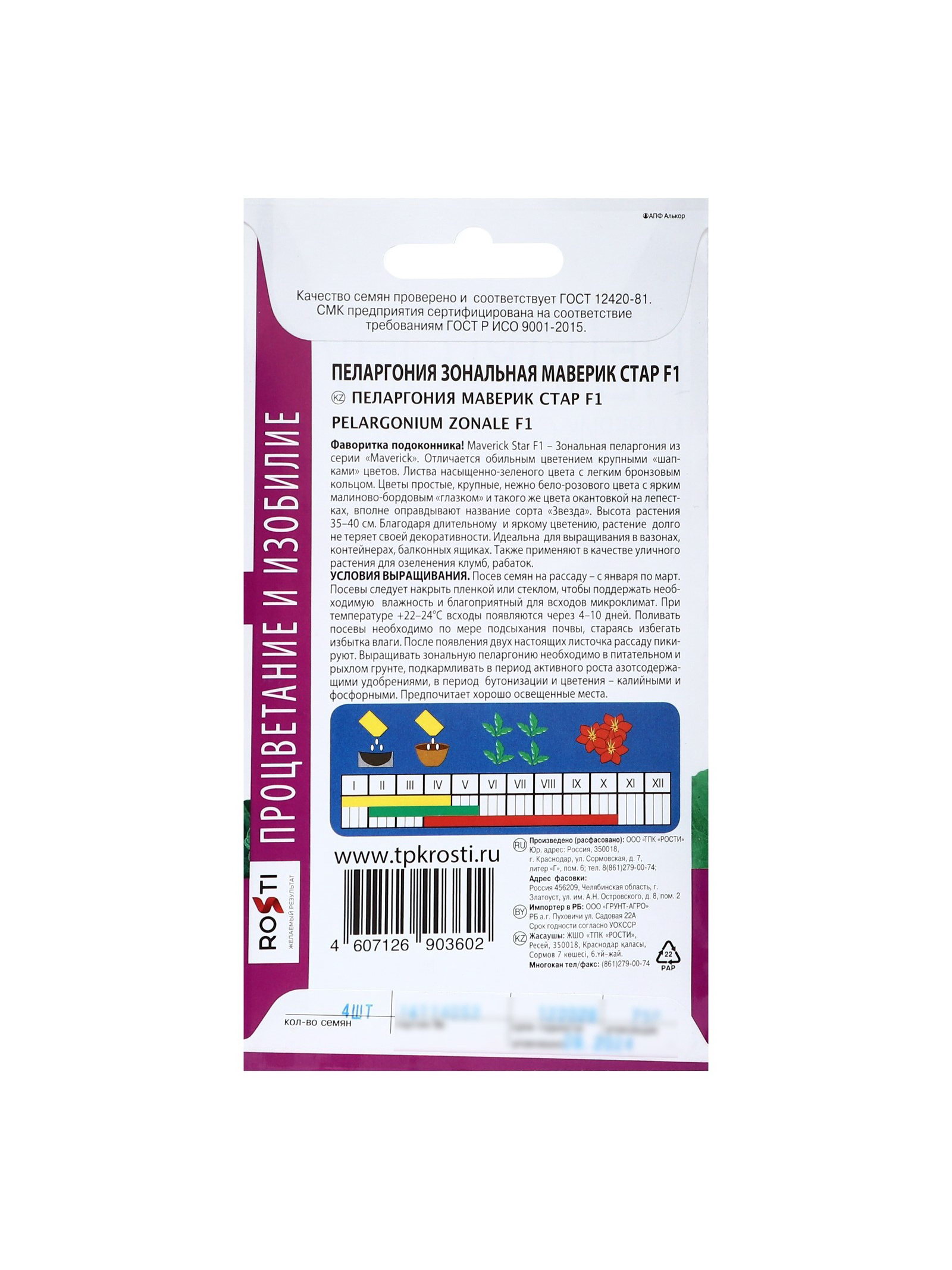 Набор семян Пеларгония "Маверик Стар", F1, 3 шт., 9x17x1 см., Мой выбор, Россия