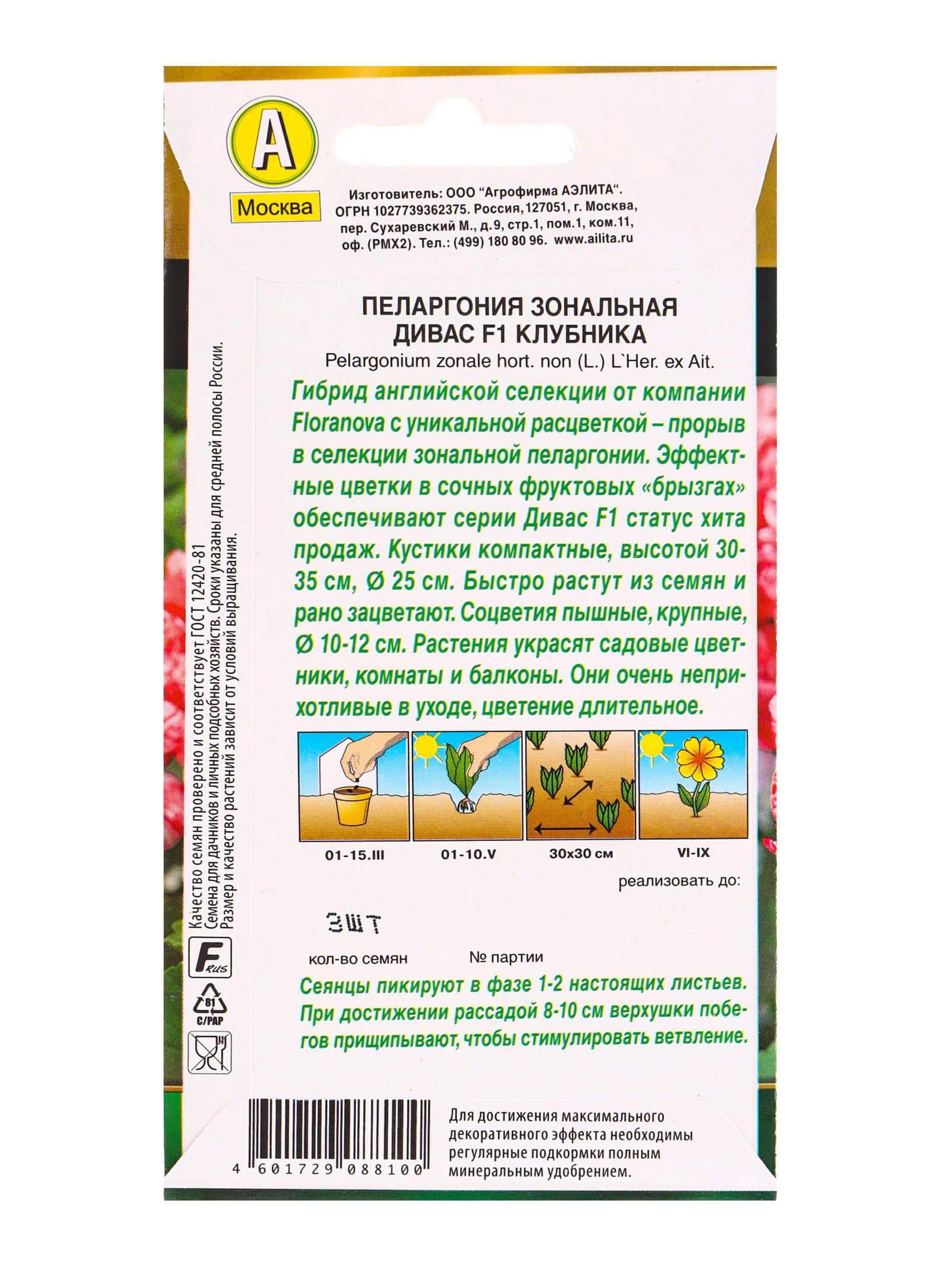 Семена цветов Пеларгония Дивас F1 клубника Мн Золотая серия, Ц/П,3 шт., Агрофирма АЭЛИТА, Кения