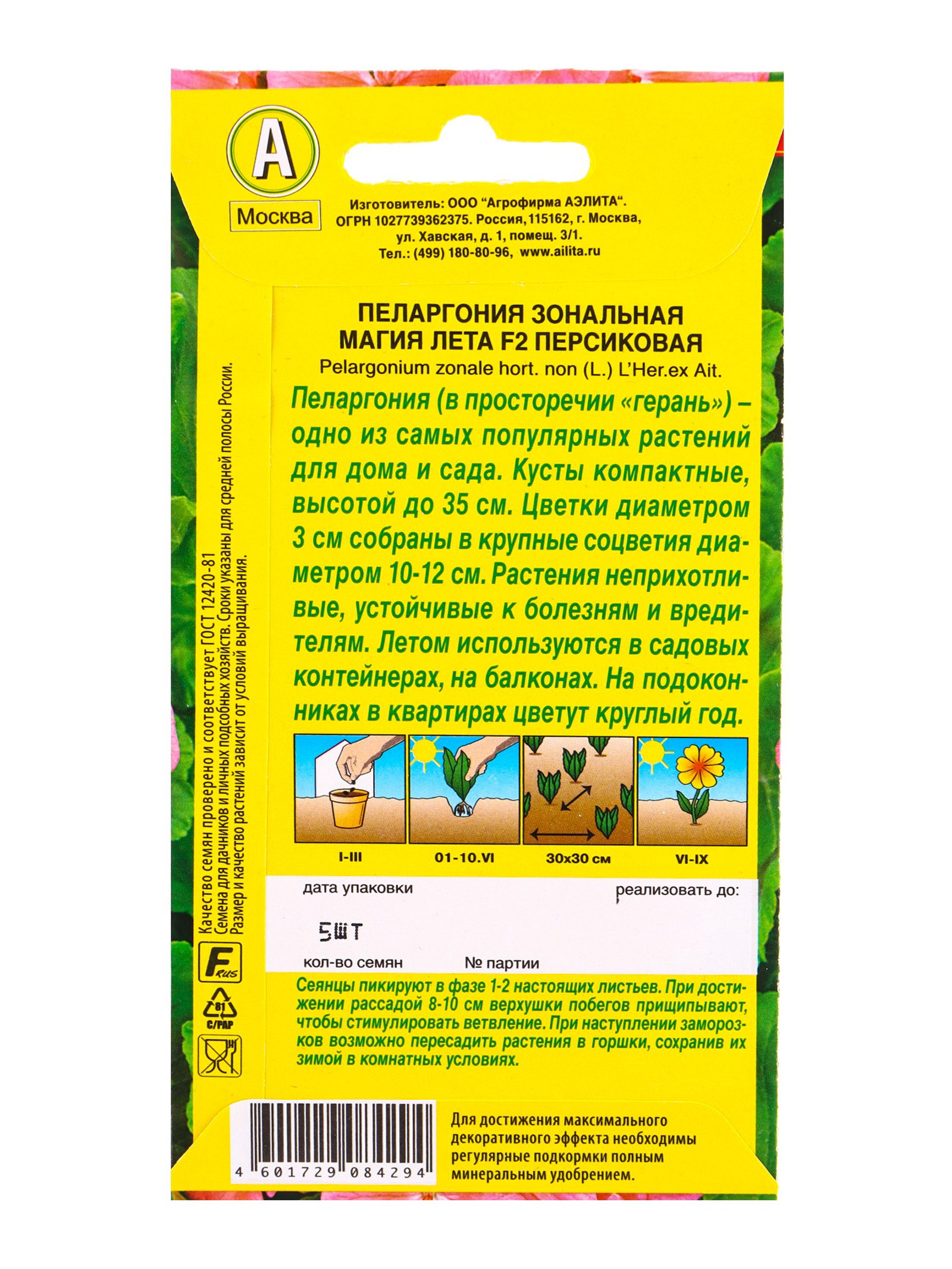 Семена цветов Пеларгония Магия лета F2 персиковая Мн, Ц/П,5 шт., Агрофирма АЭЛИТА, Нидерланды