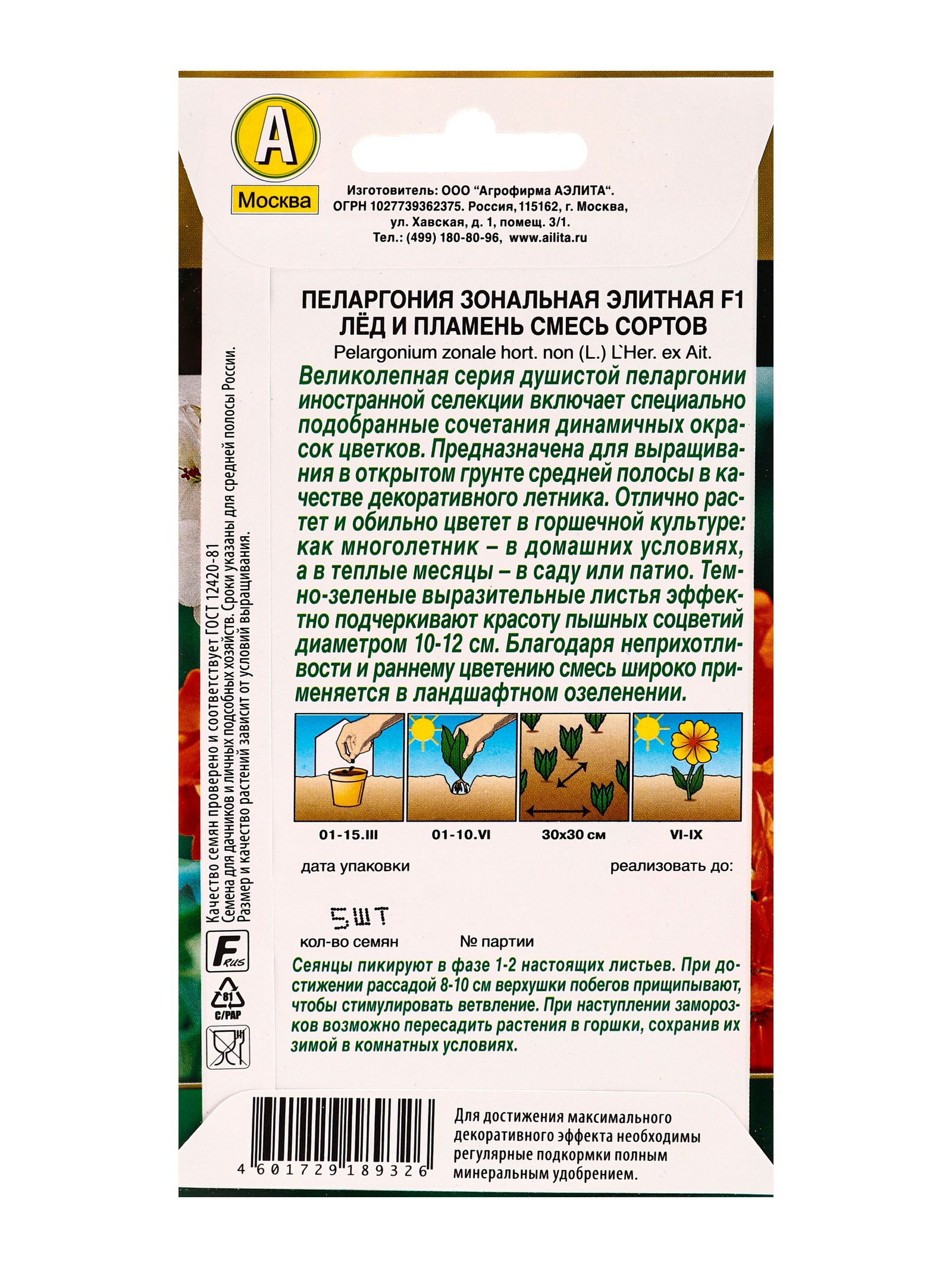 Семена цветов Пеларгония Элитная F1 лёд и пламень, смесь сортов Мн Золотая серия, Ц/П,5 шт., Агрофирма АЭЛИТА, Индия
