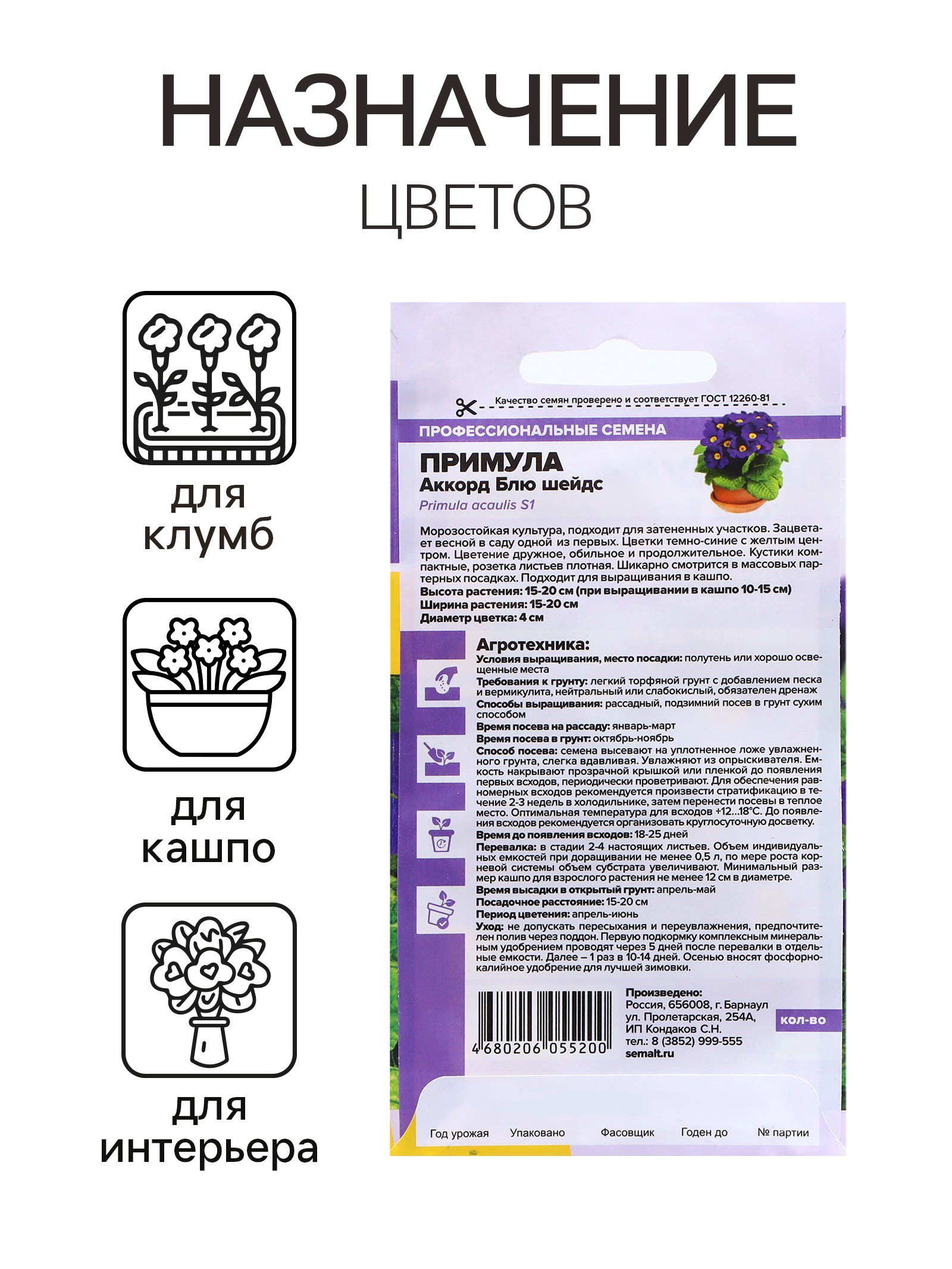 Семена Примула "Аккорд Блю шейдс", ц/п, 5 шт, Семена Алтая, Россия