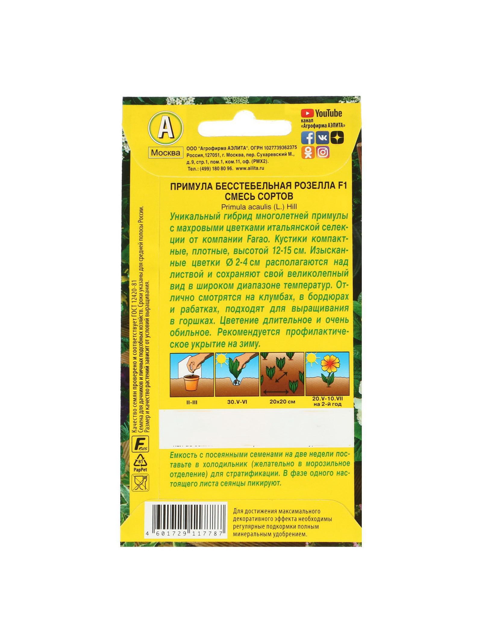 Набор семян Примула "Розелла", смесь окрасок, F1, 4 шт., 9x17x1 см., Мой выбор, Россия