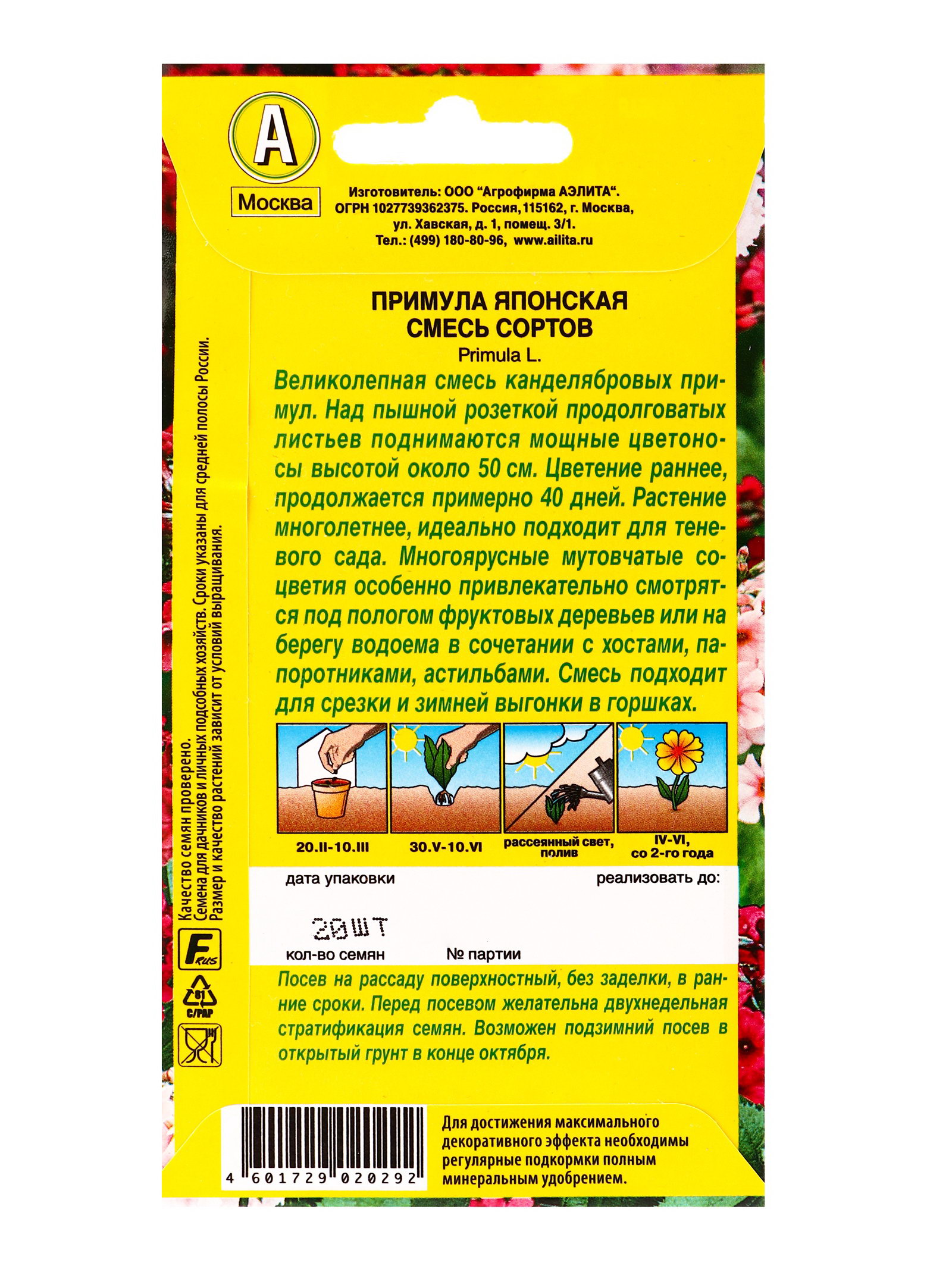 Семена цветов Примула японская, смесь окрасок Мн, Ц/П,20 шт., Агрофирма АЭЛИТА, Германия