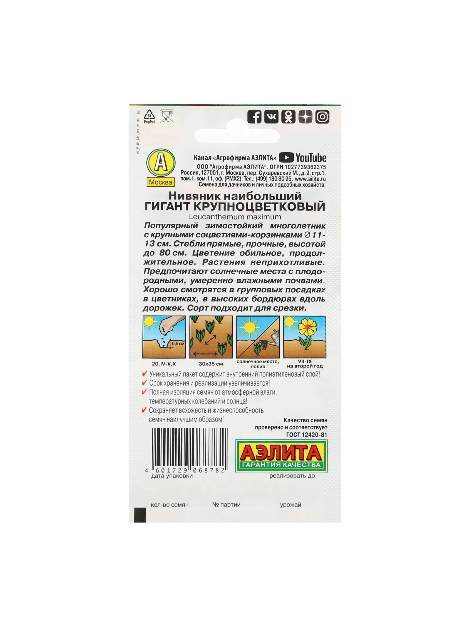 Семена цветов Нивяник "Гигант", крупноцветковый, Ц/П, 0.5 г, Агрофирма АЭЛИТА, Нидерланды
