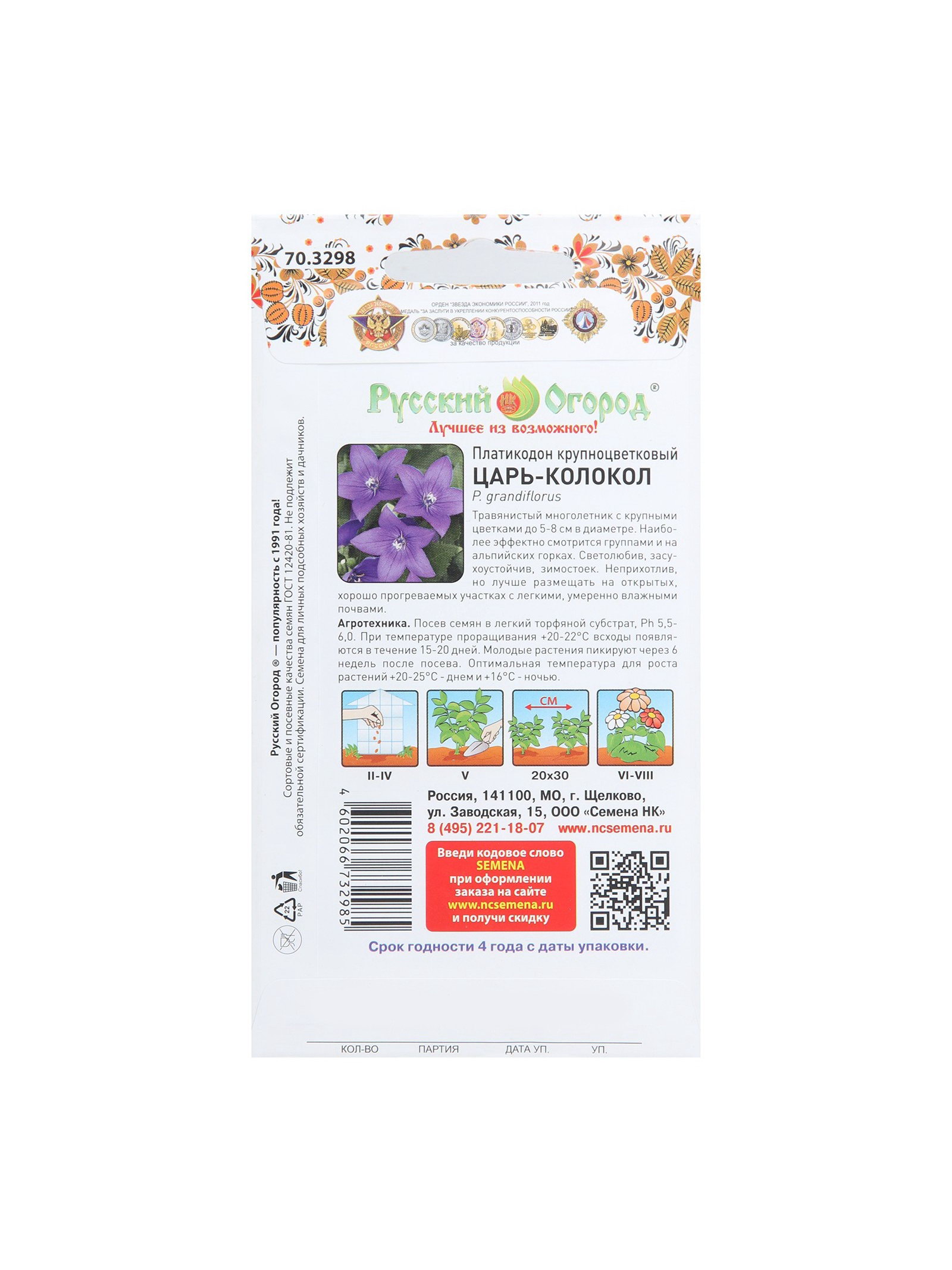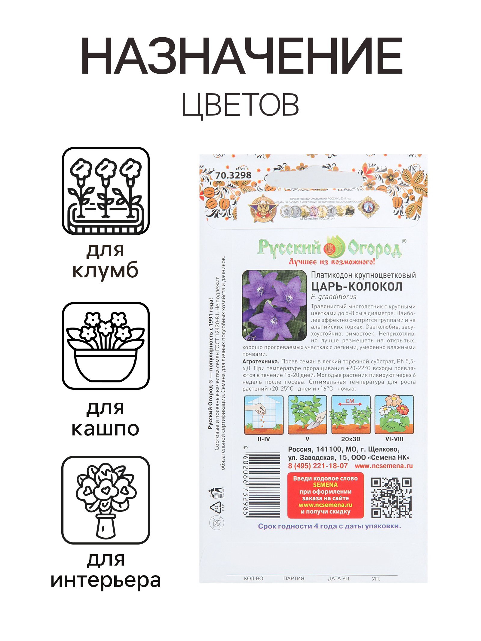 Семена цветов Платикодон "Царь-Колокол" крупноцветковый, серия Мн, 8 шт, Русский огород, Россия