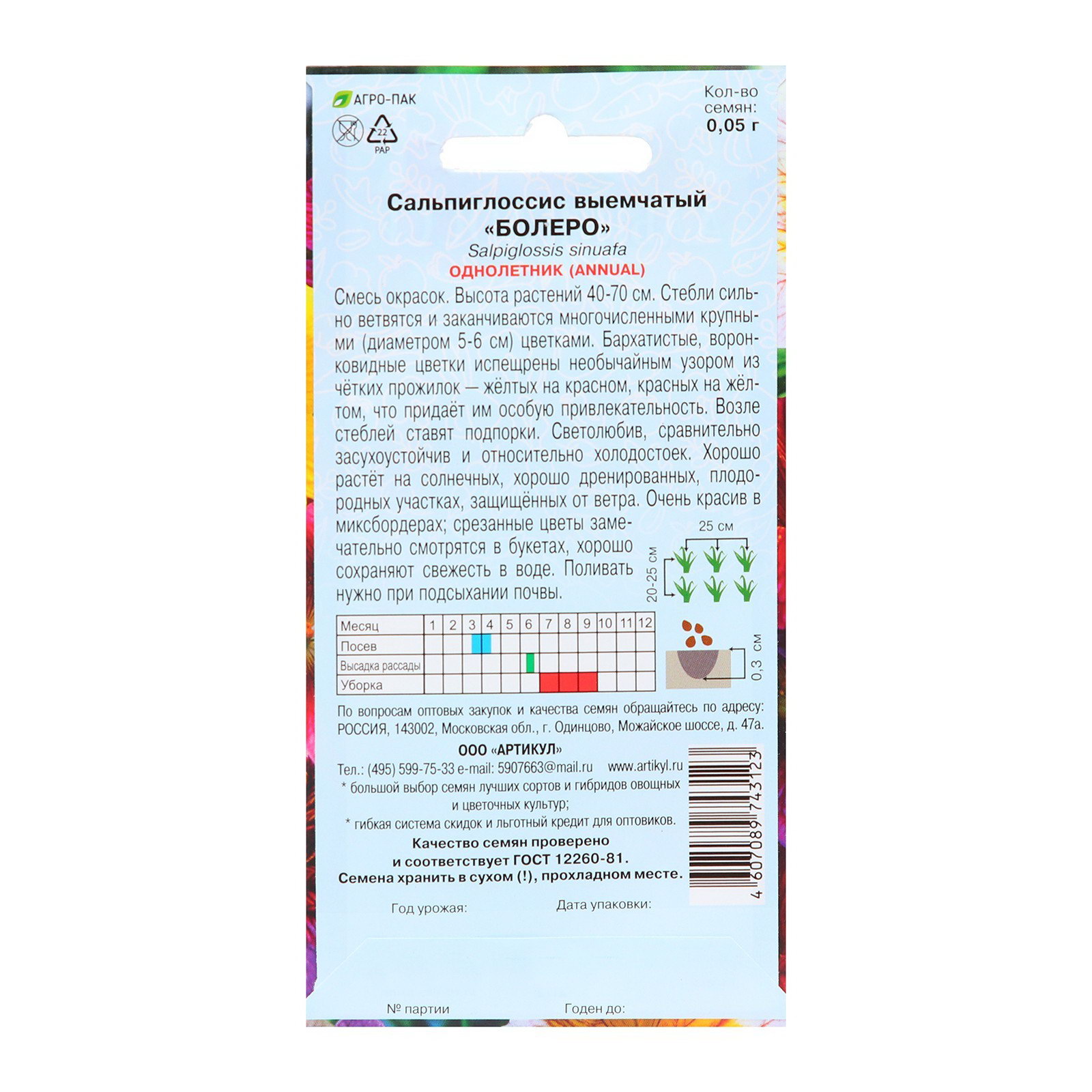 Семена цветов Сальпиглоссис "Болеро", 0.05 г, Артикул, Россия